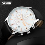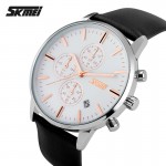 Часы Skmei 9103WTBK White-Black сочетает стиль и функциональность. Он изготовлен из металлического корпуса серебристого цвета и черного кожаного ремешка, что обеспечивает элегантный вид.