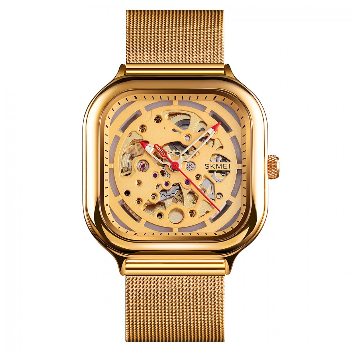 Мужские часы Skmei 9184GD Gold – стильный аксессуар, сочетающий элегантность и функциональность. Корпус изготовлен из металла золотистого цвета, а ремешок из нержавеющей стали обеспечивает комфорт и надежность. Модный квадратный дизайн подходит для casual и классических стилей. Часы имеют кварцевый механизм и стрелочный циферблат с арабскими цифрами, что позволяет удобно отслеживать время. Водонепроницаемость до 30 метров делает его пригодным для повседневного использования. Часы гарантируются на 12 месяцев, а его размеры составляют 48 х 41 мм. Вес – 102 г, длина ремешка – 25 см, ширина ремешка – 22 см.