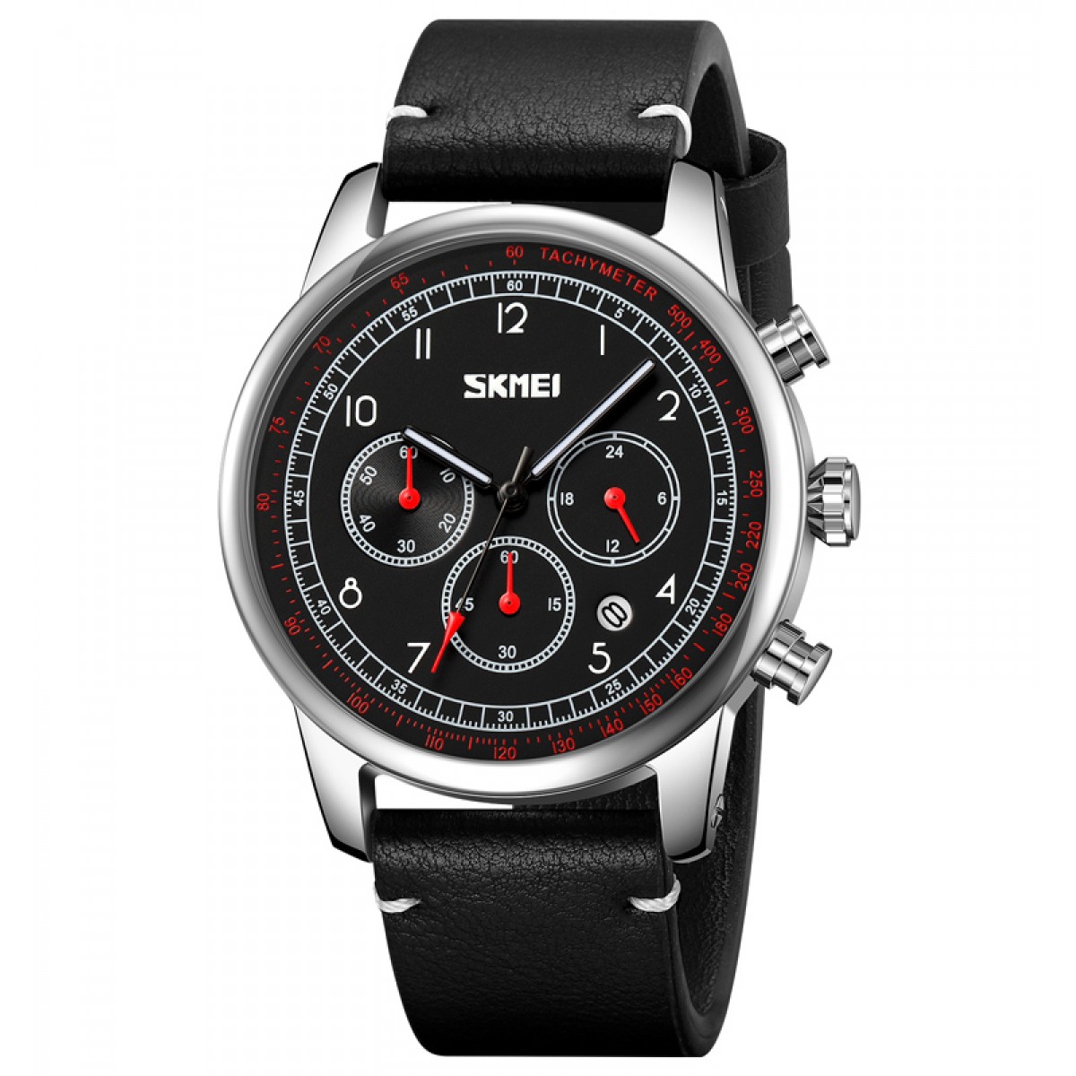 Часы Skmei 9318BKBK Black — стильный мужской аксессуар, сочетающий в себе функциональность и элегантный дизайн. Изготовлен из металлического корпуса серебристого цвета и черного кожаного ремешка, он идеально подходит для ежедневной носки.