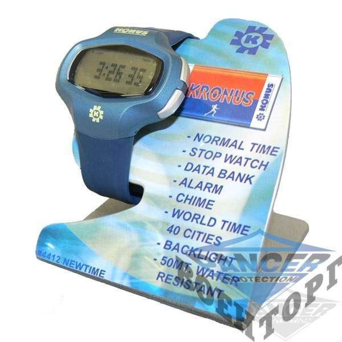Часы Konus Kronus - это прибор , который легко выдерживает прибывание под водой. Корпус выполнен из синего пластика. В часах есть встроенная подсветка, возможность установки будильника и таймера. Также Вы можете выбрать из базы, в которой 40 городом временной пояс в котором Вы находитесь и время, которого Вам интересно.Еще одной полезной функцией является возможность хранения информации.