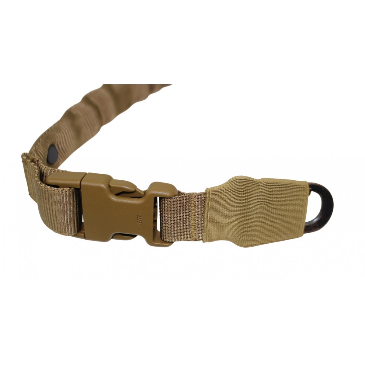 Карабин изготовлен из прочной стали US Mil. Спец. ИК-материалы. Это полностью регулируемая одноточечная стропа для банджи, которая крепится через Т-образный стержень к любому MOLLE-совместимому жилету, нагруднику или броне. Позволяет работать обеими руками, предотвращая натирание шеи, которое иногда наблюдаются при использовании других строп. Прикреплен к крючку в стиле H&K, для быстрого отсоединения от оружия.