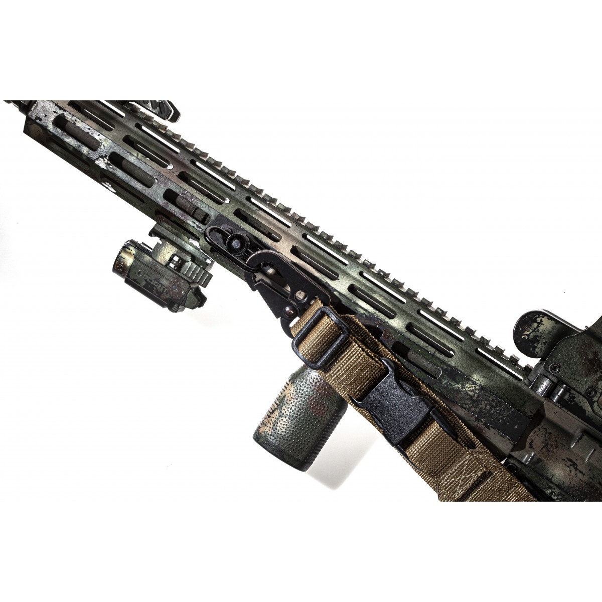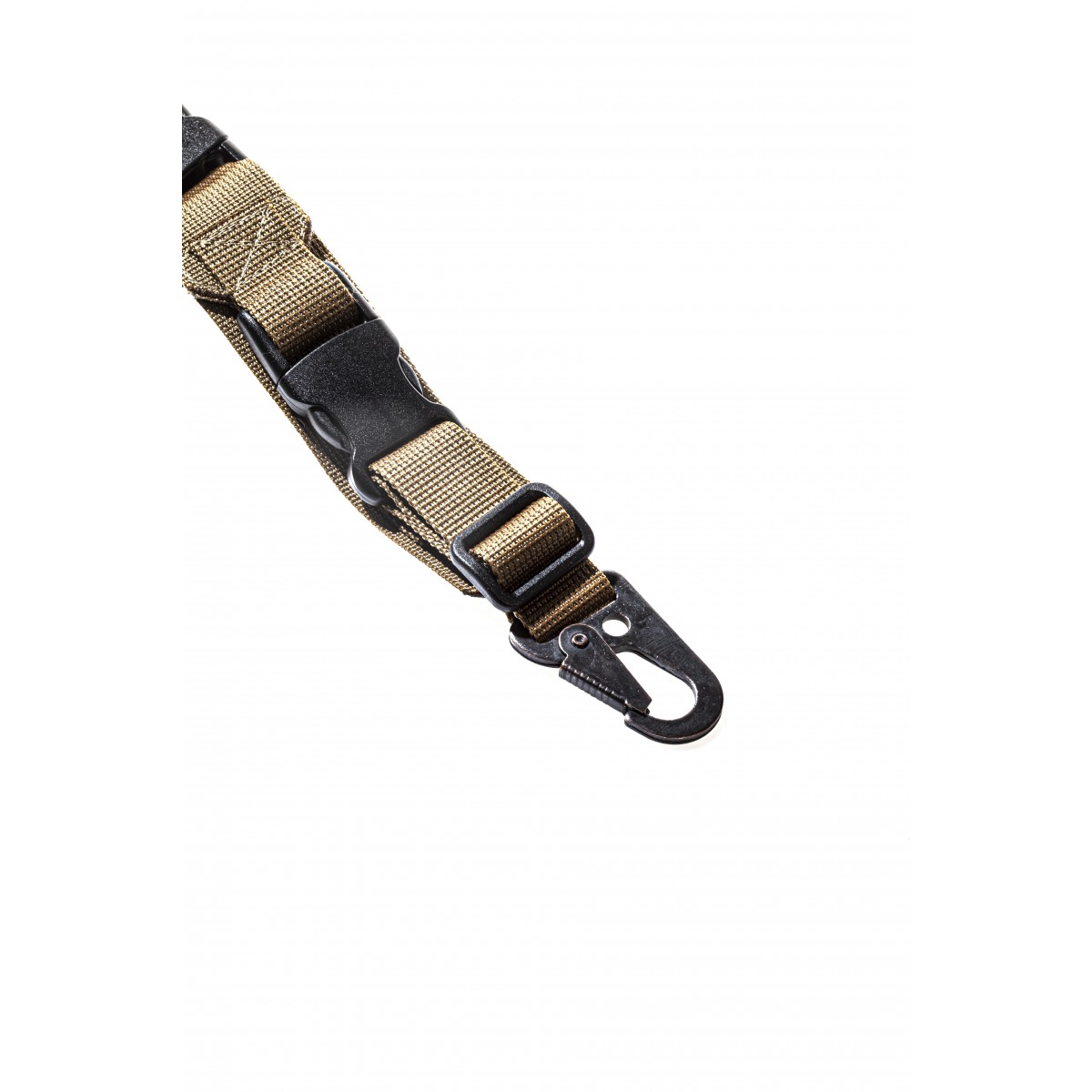 Дополнительно к ремню можно купить оружейный карабин, который вплетается в переднюю стропу и адаптирует ремень для быстрого присоединения/отсоединения к оружию.