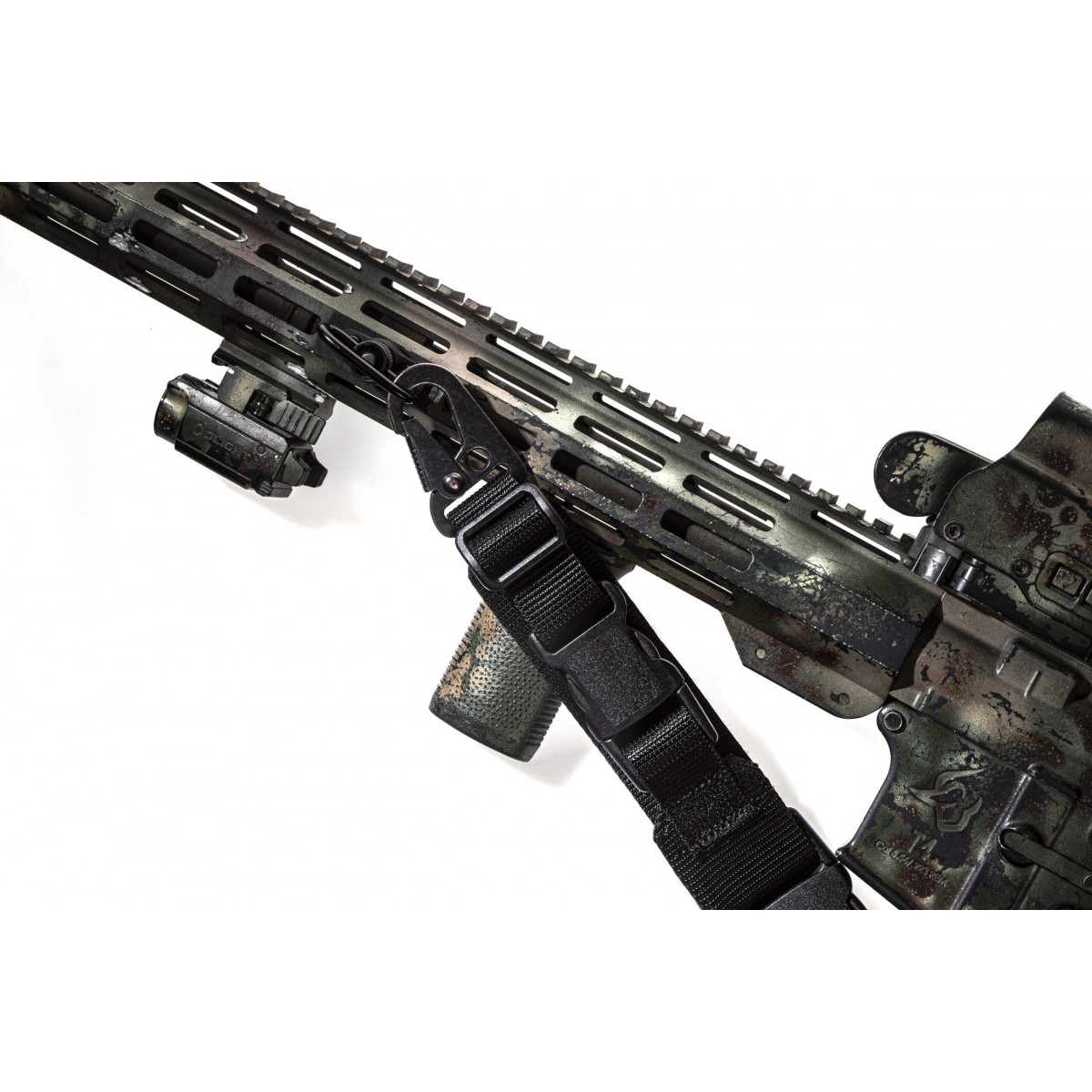 Дополнительно к ремню можно купить оружейный карабин, который вплетается в переднюю стропу и адаптирует ремень для быстрого присоединения/отсоединения к оружию.