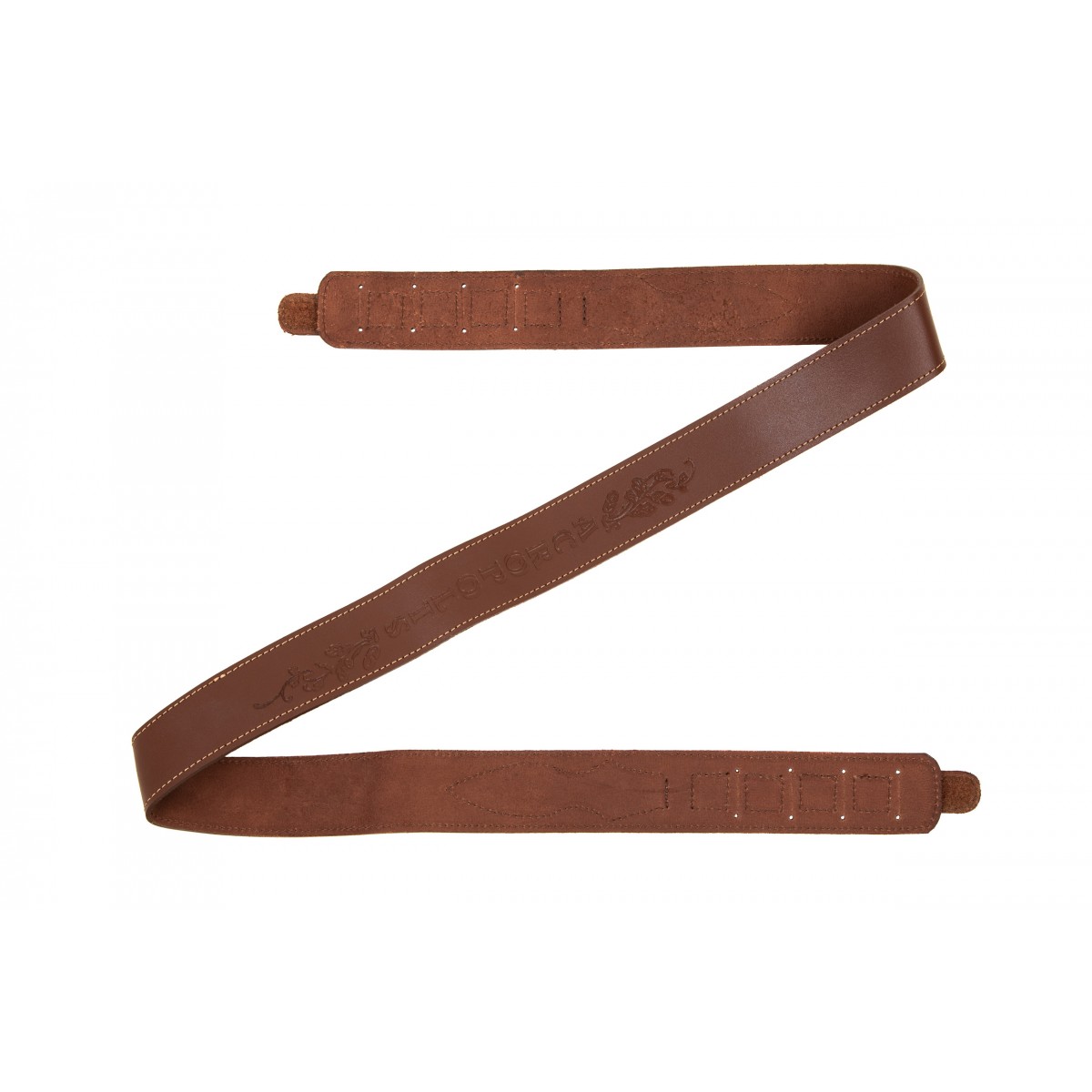 Ремень для оружия изготовлена из кожи с рельефным декоративным тиснением. Отсутствуют металлические детали креплений. Ремень крепится к оружию простым и надежным способом. Антабка продвигается в отверстие на ремне, а хлястик проходит через антабку. Хлястик дополнительно фиксирует ремень текстильной застежкой.