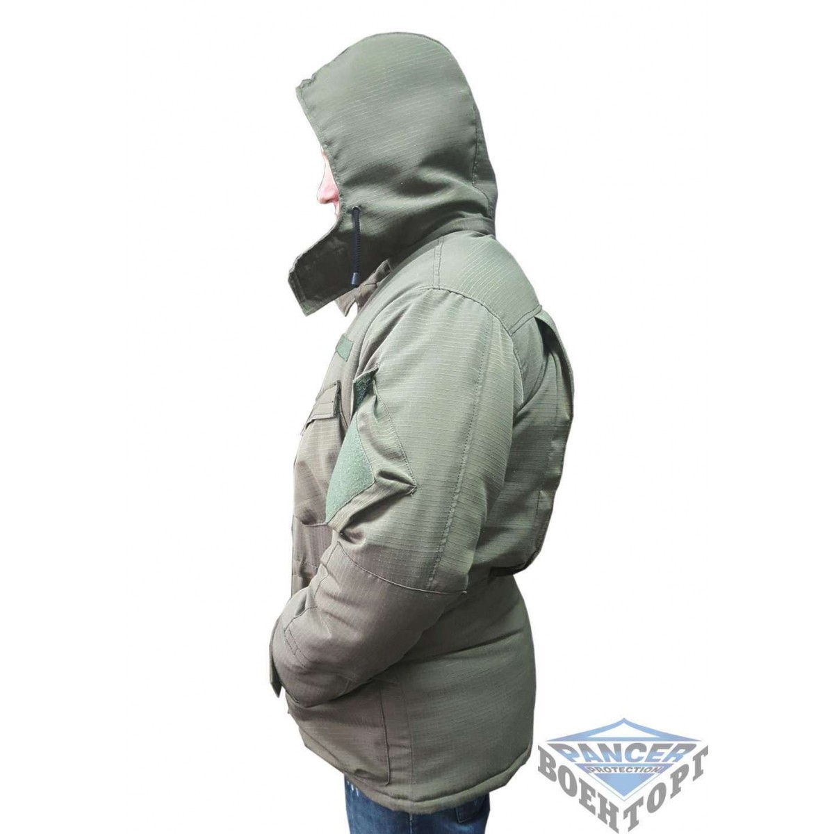 - Бушлат: съёмная подстёжка, капюшон на молнии, 7 карманов, утяжка пояса, манжеты на резинке