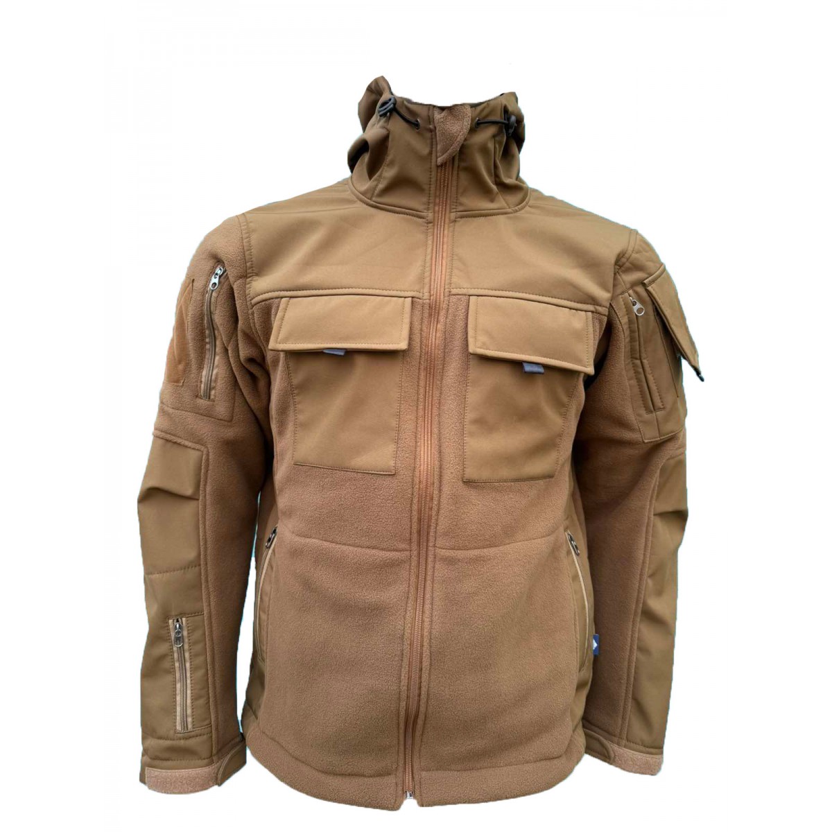 Кофта Profisoft + Fleece Pancer Brown Coyote — тёплая тактическая флиска с капюшоном, созданная для работы в прохладную и ветреную погоду. Плотный флис Profisoft сочетается с Soft Shell-вставками и влагозащищёнными молниями, которые помогают удерживать тепло и защищают от лёгких осадков. Военнослужащие и пользователи отмечают удобную посадку, функциональные карманы и сдержанный чёрный цвет, подходящий для службы, патрулирования и повседневного ношения.