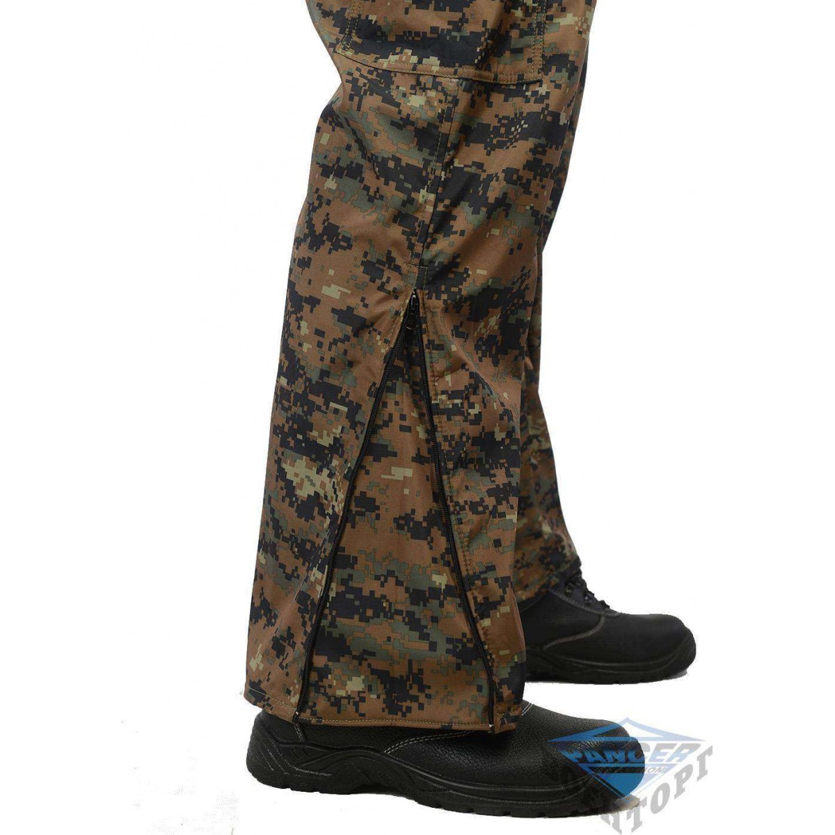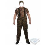 Штаны с высоким съёмным поясом на подтяжках. Эластичный пояс. Два боковых верхних кармана, два объёмных боковых кармана с клапаном на велкро. Ширина низа штанов регулируется молнией.