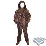 Костюм свободного покроя, из мягкой и не шуршащей ткани, плотная подкладка из саржевой ткани на куртке, расцветка, отлично маскирует в местности лесной, или болотистой.