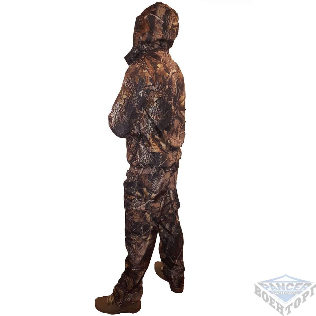 Костюм свободного покроя, из мягкой и не шуршащей ткани, плотная подкладка из саржевой ткани на куртке, расцветка, отлично маскирует в местности лесной, или болотистой.