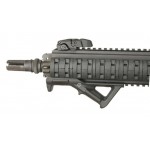Угловая рукоять Magpul AFG(Angled Fore Grip) на цевье обеспечивает естественный хват оружия, что в свою очередь снижает утомляемость для мышц и обеспечивает более длительную комфортную работу с оружием. Дизайн угловых рукояток управления огнём был создан с учётом концепции «инстинктивной стрельбы».