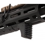 Упор Barricade Stop обладает прочным полимерным корпусом, в который вставлена пластина из закаленной азотированной стали. Стальная пластина слегка изогнута и имеет зубчастую текстуру для оптимального контакта на неровных поверхностях, что дает возможность поворачивать оружие, сохраняя контакт и контроль.