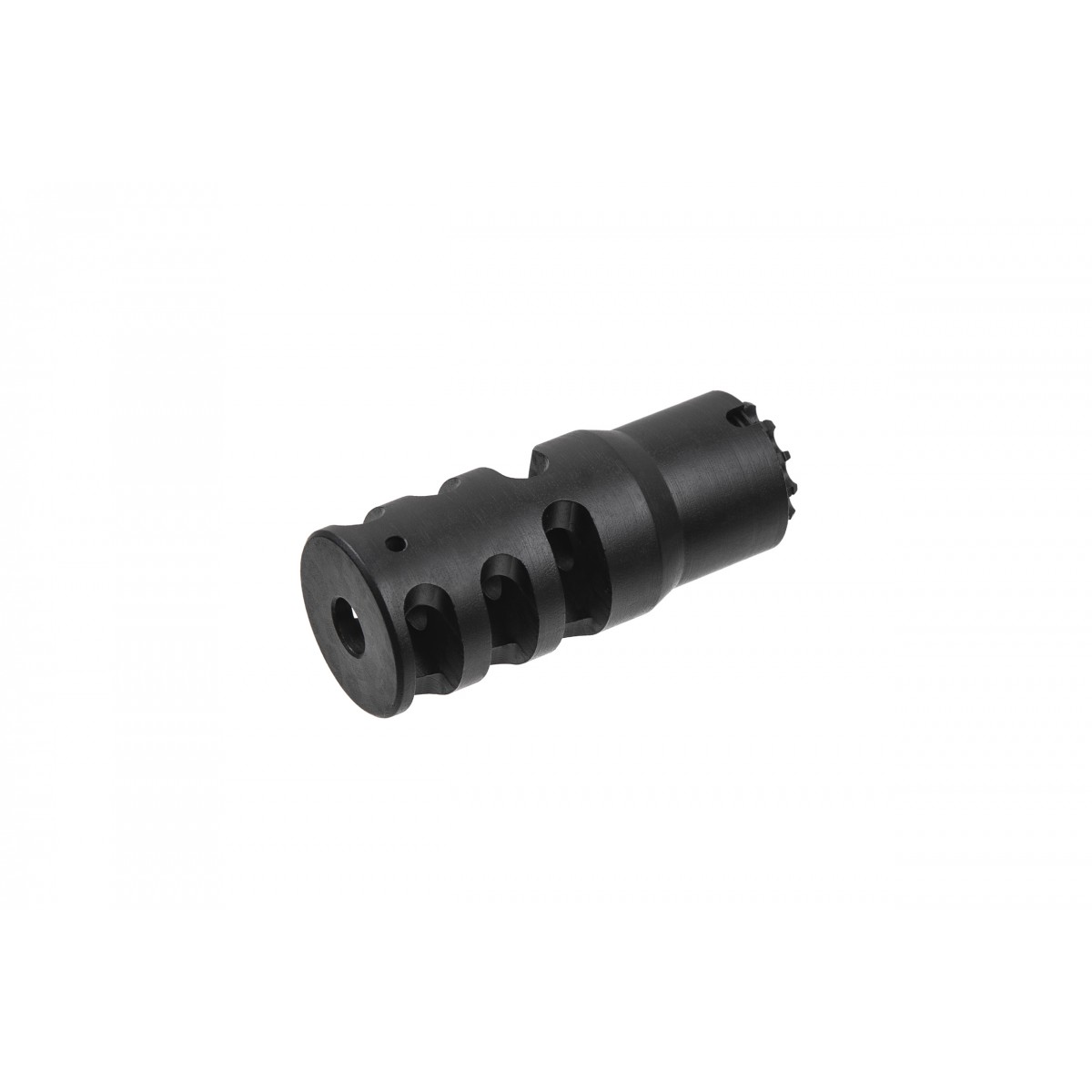 Данное дульный тормоз-компенсатор эффективно убирает подбрасывание ствола при выстреле и снижает импульс отдачи выстрела с помощью уникальной системы отвода пороховых газов.