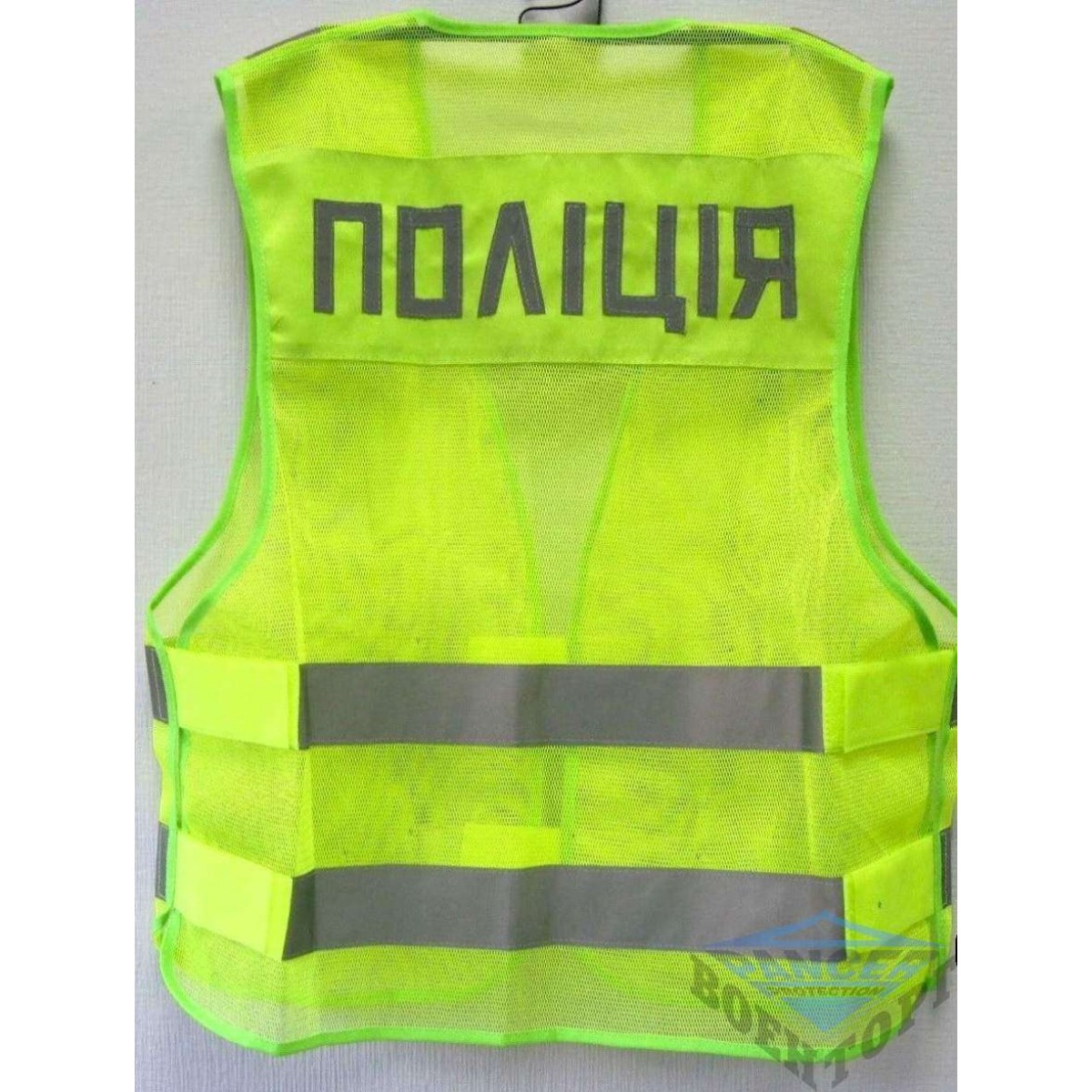 - Сзади на спине светоотражающим материалом написано название ведомства, в котором вы работаете ("Поліція", "ДАІ" и т.д.).