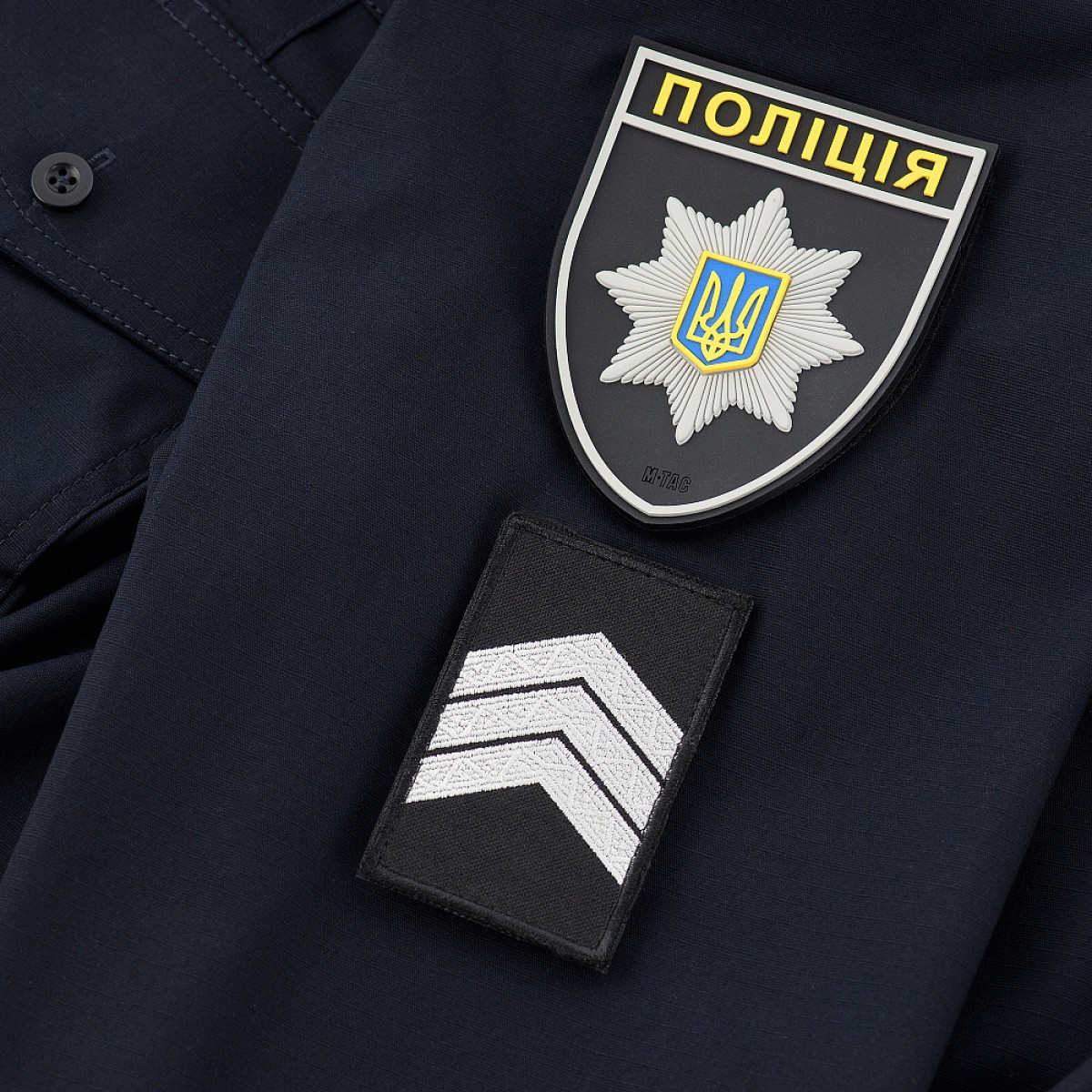 M-TAC рубашка Police Lite Shirt - форменная полицейская рубашка в чёрном цвете. Это максимально облегченная версия рубашки, утвержденной Национальной Полицией в качестве униформы. Покрой и внешний вид рубашки идентичен оригиналу. Основная модификация заключается в том, что убраны большие нагрудные карманы под документы. Рубашка имеет воротник-стойку и длинные рукава с манжетами на пуговицах. Передняя застежка - планка на пуговицах. Рубашка пошита из эластичного поликоттона рип-стоп.