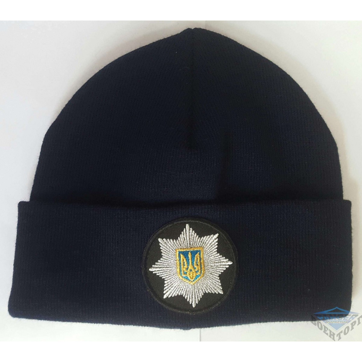 Описание Шапка вязанная полиции Украины какарда темносиняя