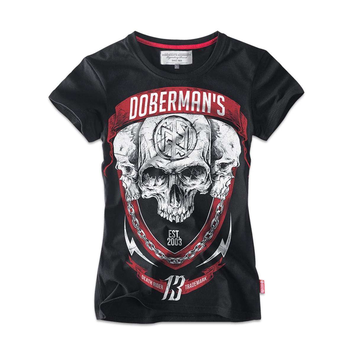 Дизайн одежды Dobermans Aggressive- вот что является отличительной чертой бренда. Внимательность к мелочам, отделка, принты и вышивки - все это делает одежду Dobermans Aggressive не похожей на другую. Практически весь ассортимент Dobermans Aggressive - куртки, рубашки, брюки, лонгсливы, футболки, толстовки производятся из 100% хлопка, что обеспечивает максимум комфорта при носке и эксплуатации. Ключевой особенностью бренда является то, что вся продукция изготавливается исключительно в странах Евросоюза. Вся представленная продукция в данном разделе является результатом творческой деятельности дизайнеров бренда Dobermans Aggressive. Все изображения нанесённые на изделия не несут политической или идеологической подоплеки. Символика не входит в список запрещенной.Основные характеристики Футболка женская Dobermans TSD167BK
