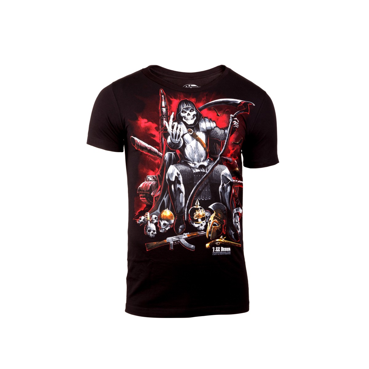 В футболке воплащено некое концептуальное, живописное искусство фантазии. Пустошь брони, пушек, МБР и шлемов с воинскими шлемами давно ушла в эту темную сцену.