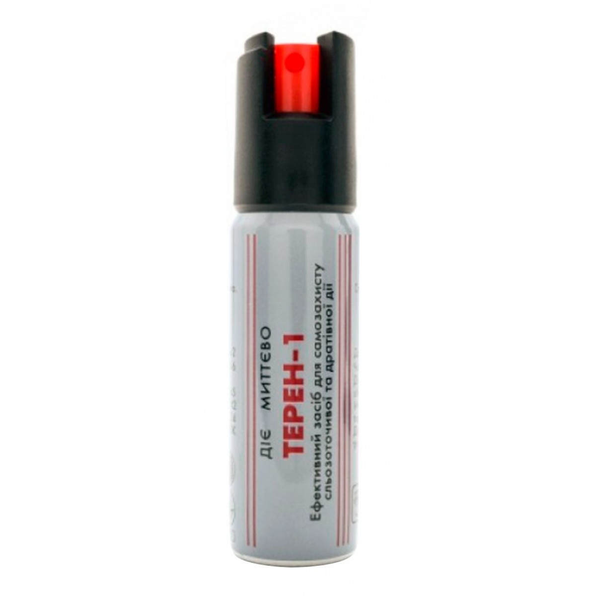 Изделия серии "Терен" (ТУ У 29.6-19485052-019-2002) предназначены для использования гражданскими лицами в качестве средства самозащиты и представляют собой баллоны аэрозольного типа, заполненные препаратом, содержащим вещество слезоточивого и раздражающего действия (ирритант) — морфолид пеларгоновой кислоты. Препарат оказывает воздействие "конусом" аэрозольного облака, он эффективен при применении как против лиц, находящихся в состоянии алкогольного опьянения, так и против собак.