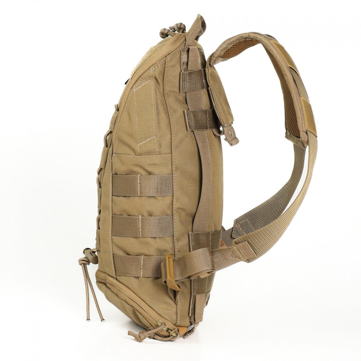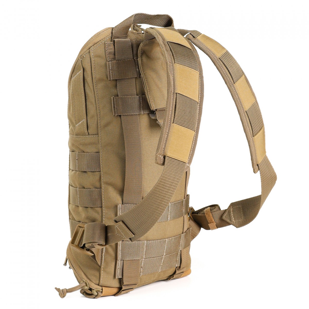 Рюкзак «Джерело» с помещенным в него гидратором является функциональной альтернативой бутылкам и флягам. Его конструкция обеспечивает удобное ношение и легкий доступ к воде во время движения. Кроме того, он предлагает возможности для организации дополнительного содержимого. Особенности товара К главным преимуществам рюкзака относятся следующие: Он может вместить гидратор на 2 л. А благодаря скрытому под молнией отсеку на дне рюкзака объем можно увеличить до 3 л. В застегнутом виде в этом кармашке можно хранить какую-то небольшую вещь, например складной нож. Внутри рюкзака есть карман (19×30 см), куда можно вложить небольшое количество боеприпасов и еды. Над карманом помещены велкро-хлястики для крепления гидратора. На верхних частях обеих боковин есть выходы под шланг, которые застегиваются на велкро. Рюкзак можно крепить к заднему чехлу плитоноски на систему MOLLE. При необходимости носить его на плечах, в комплекте идут лямки с демпферными накладками. Снизу они крепятся к нашитым под углом стропам. Сверху – шнуруются к системе MOLLE. На передней части содержится восемь петель, через которые накрест протянут эластичный шнурок с фиксатором. Он позволяет закрепить легкое снаряжение или одежду, например шапку, баф и тому подобное. А еще с его помощью можно затягивать рюкзак для уменьшения его объема. С самого верха расположена велкро-панель (10×5 см) для патчей. С обеих сторон нашиты по две ячейки MOLLE в три ряда, на которые можно повесить небольшие подсумки. На дне помещен металлический люверс для стока лишней влаги или выхода мелкого мусора. Обзор рюкзака. Технические характеристики Материал: Cordura 1000D. Стропа: полиамид, 2,5; 4 см. Размер в сложенном состоянии: 24×37×8 см. Размер в разложенном состоянии: 24×40×8 см. Длина лямок: 87 см. Вес: 417 г.Основные характеристики Рюкзак под гидратор "Джерело" (Койот)