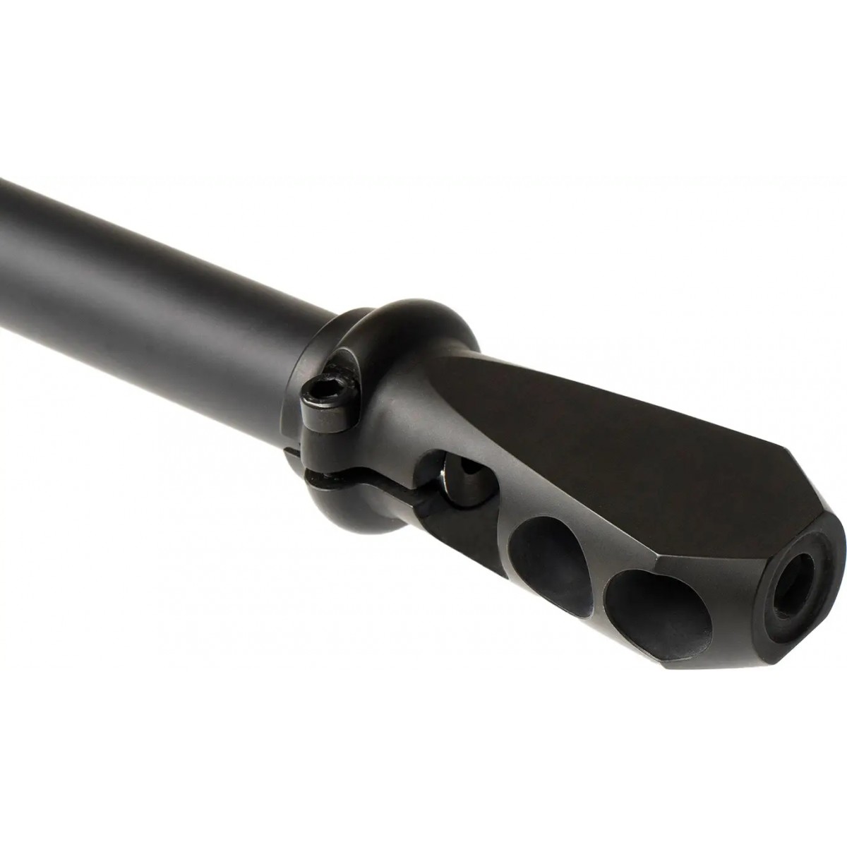 Дульный тормоз ROME серии Т ProAngle для калибра.338 с 3-мя наклоненными вперед камерами крепится на ствол с помощью крепежного винта. Изготовлен из азотированной углеродистой стали с защитным покрытием.