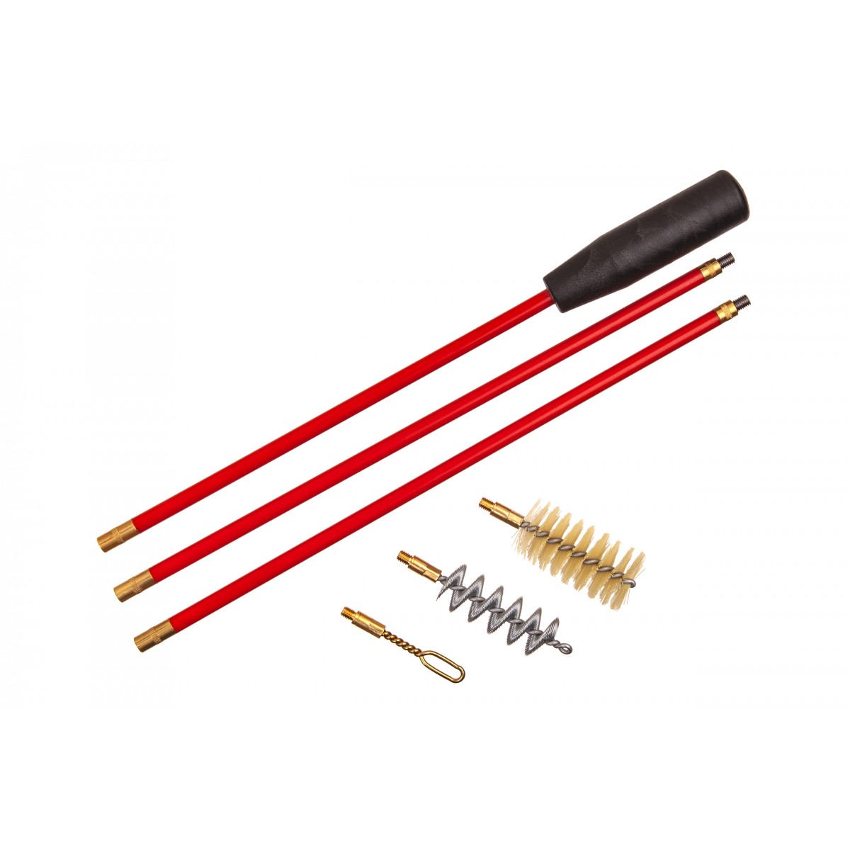 Комплектность: шомпол стальной в пластиковой обплетке, ерш стальной спиральный, ерш щетинный, вишер