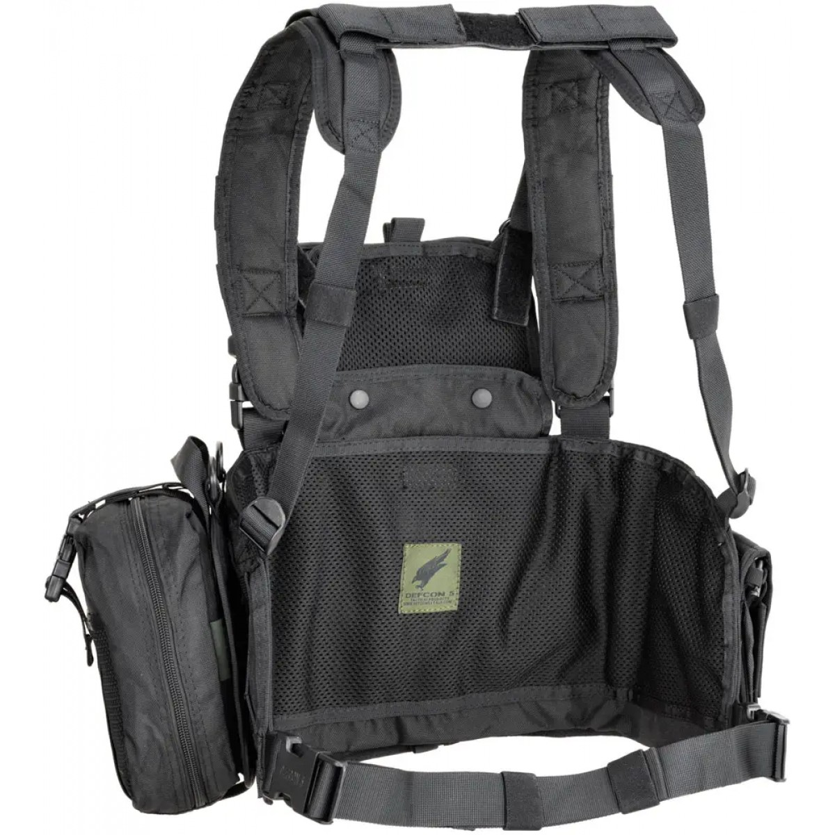 Defcon 5 Multirole Recon Chest Rig — разгрузочный ремень с карманом на фронтальной части для размещения баллистической пластины. Модель изготовлена из высококачественного полиэстера плотностью 900D. Все швы усилены для обеспечения максимальной прочности в моменты высокой активности. Плечевые лямки можно использовать двумя способами: перекрестить на спине для тех, кто работает на транспортном средстве, либо надеть на плечи, чтобы спина оставалась свободной для ношения рюкзака. Регулировать размер в области торса можно в трех местах: поясничный ремень с двойной пряжкой-фастексом, ремень на липучке для регулировки плеч и две задние лямки с пряжками. Жилет Multirole Recon рассчитан на 6 магазинов для патронов кал. 5,56x45 мм NATO , включая 2 быстросъемных и два коротких магазина для 9-мм патронов. Также предусмотрены съемные медицинский и грузовой подсумки для немедленного использования в экстренных ситуациях и «административный» карман для карты.