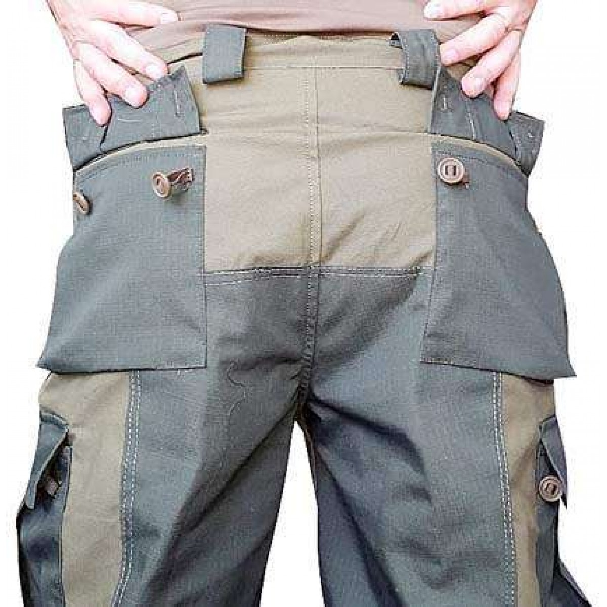 Имеются задние карманы, закрывающиеся на пуговицы. Шлёвки широкие – специально для
