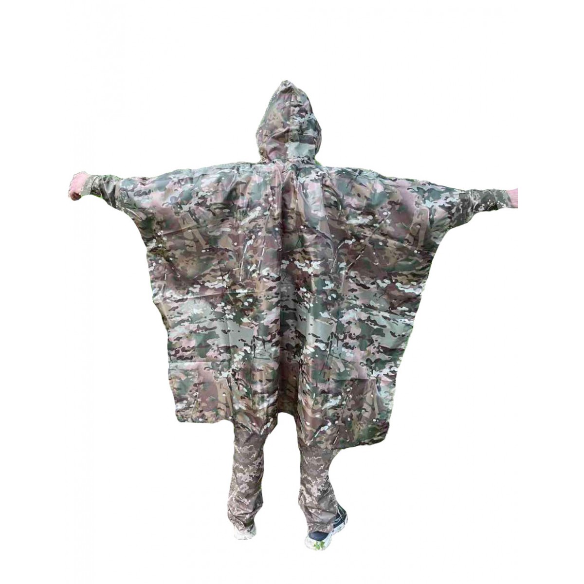 Если вам нужно купить военный дождевик, то нет варианта лучше, чем данное камуфляжное пончо. Расцветка мультикам очень универсальна в применении – подходит для любой местности нашей страны. Этот дождевик-костюм военный купить стоит также для рыбалки, охоты, туризма. Он обладает хорошими маскирующими свойствами, а также отлично защитит вас от воды.