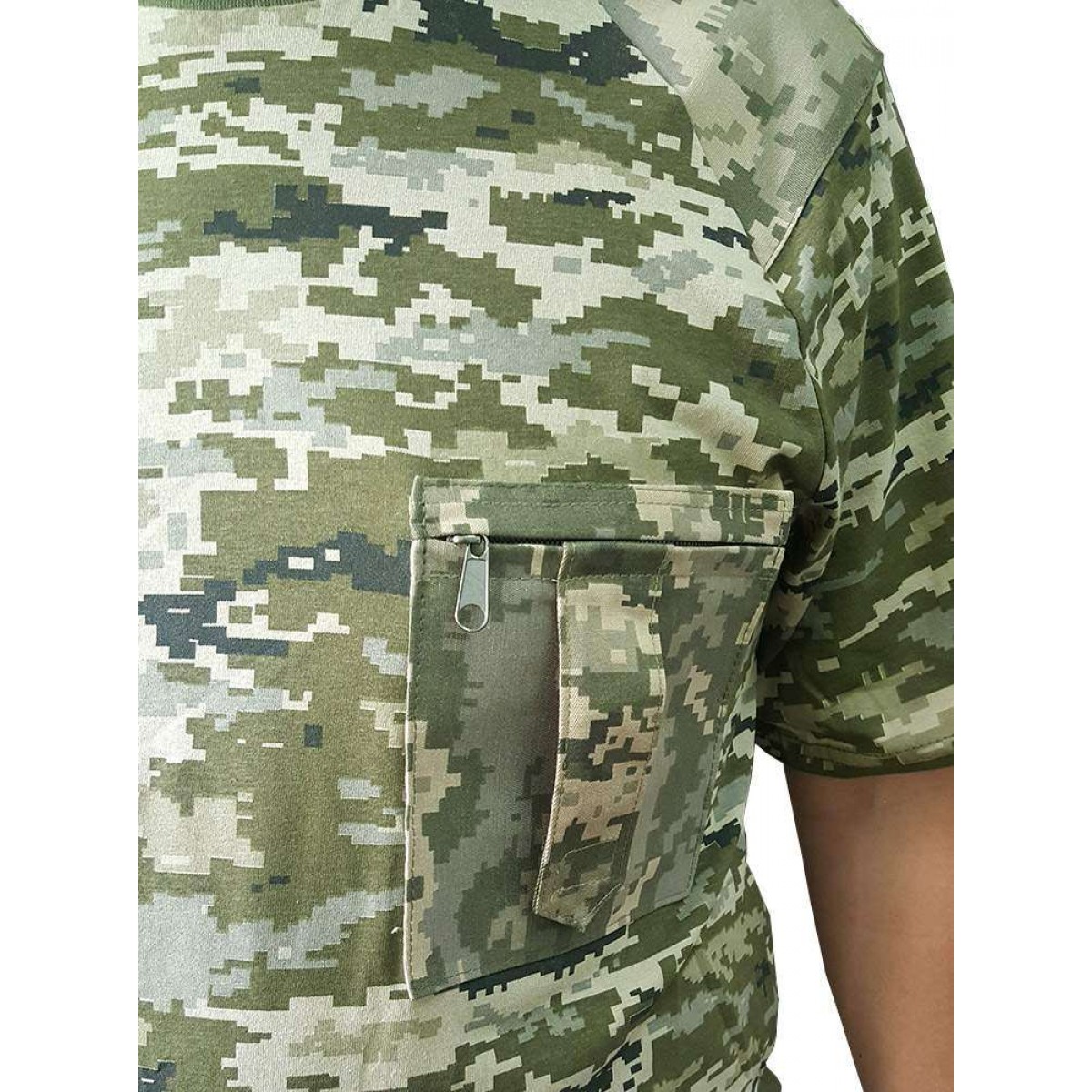 Купить военную футболку без кармана равносильно неполноценному приобретению. В данной модели карман на груди застегивается на молнию.
