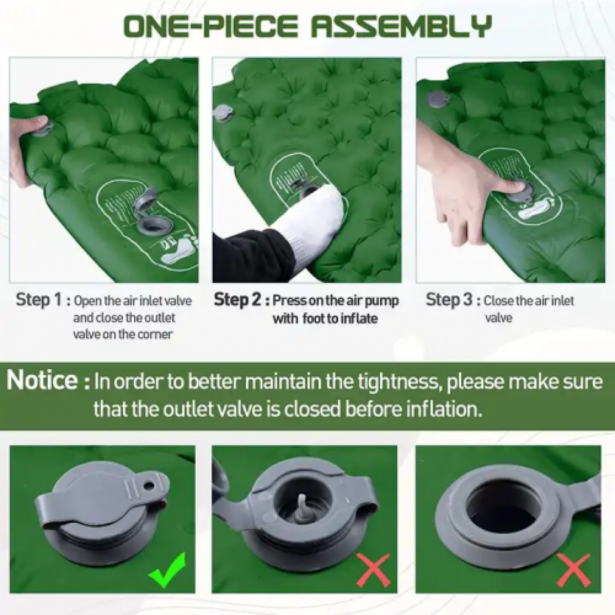 Особенность данного коврика во встроенной помпе для ноги снизу. Не требует дополнительного насоса. Полное накачивание занимает 2 минуты.