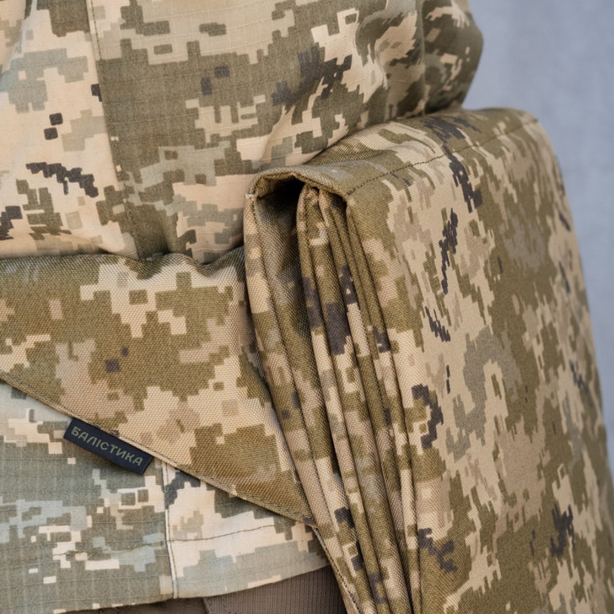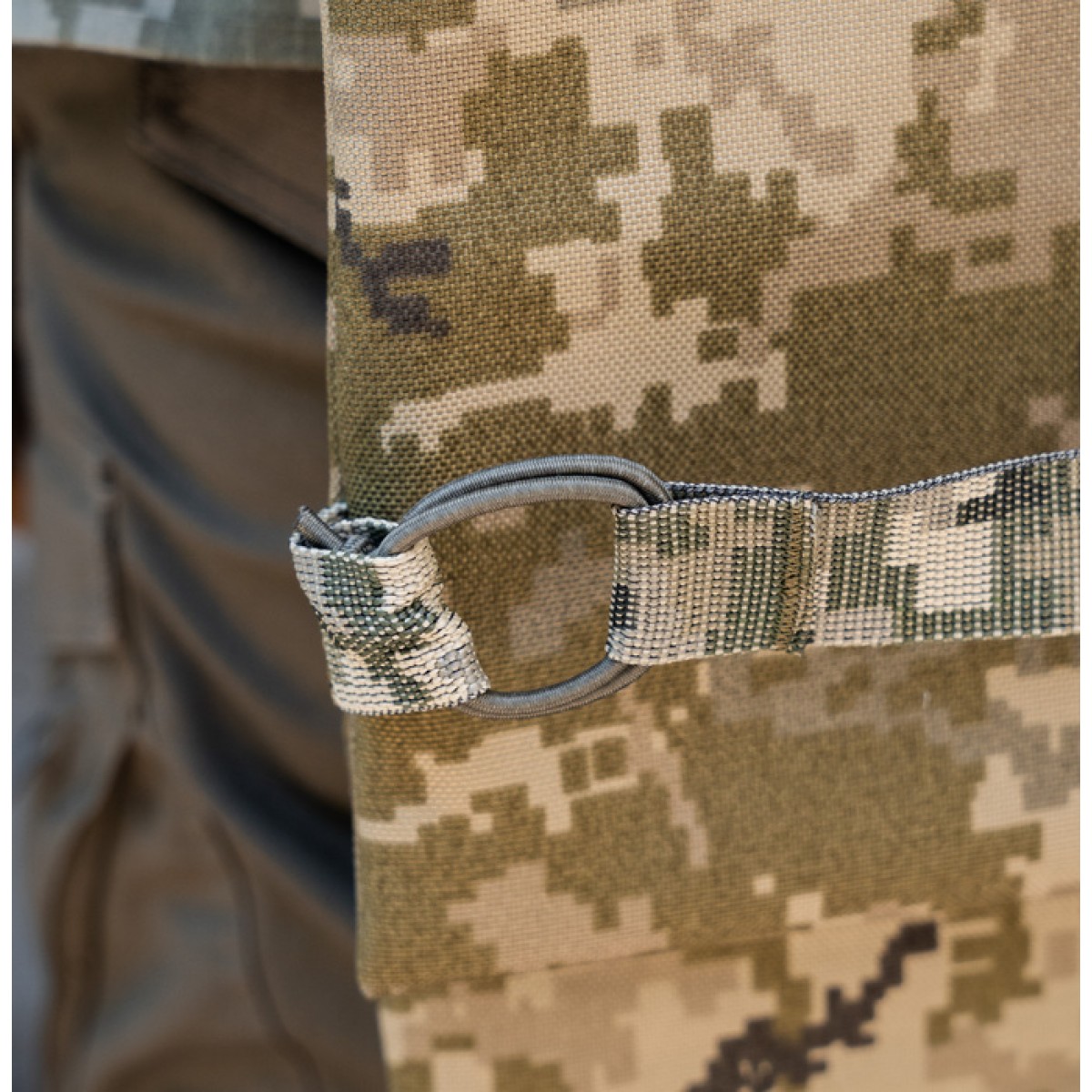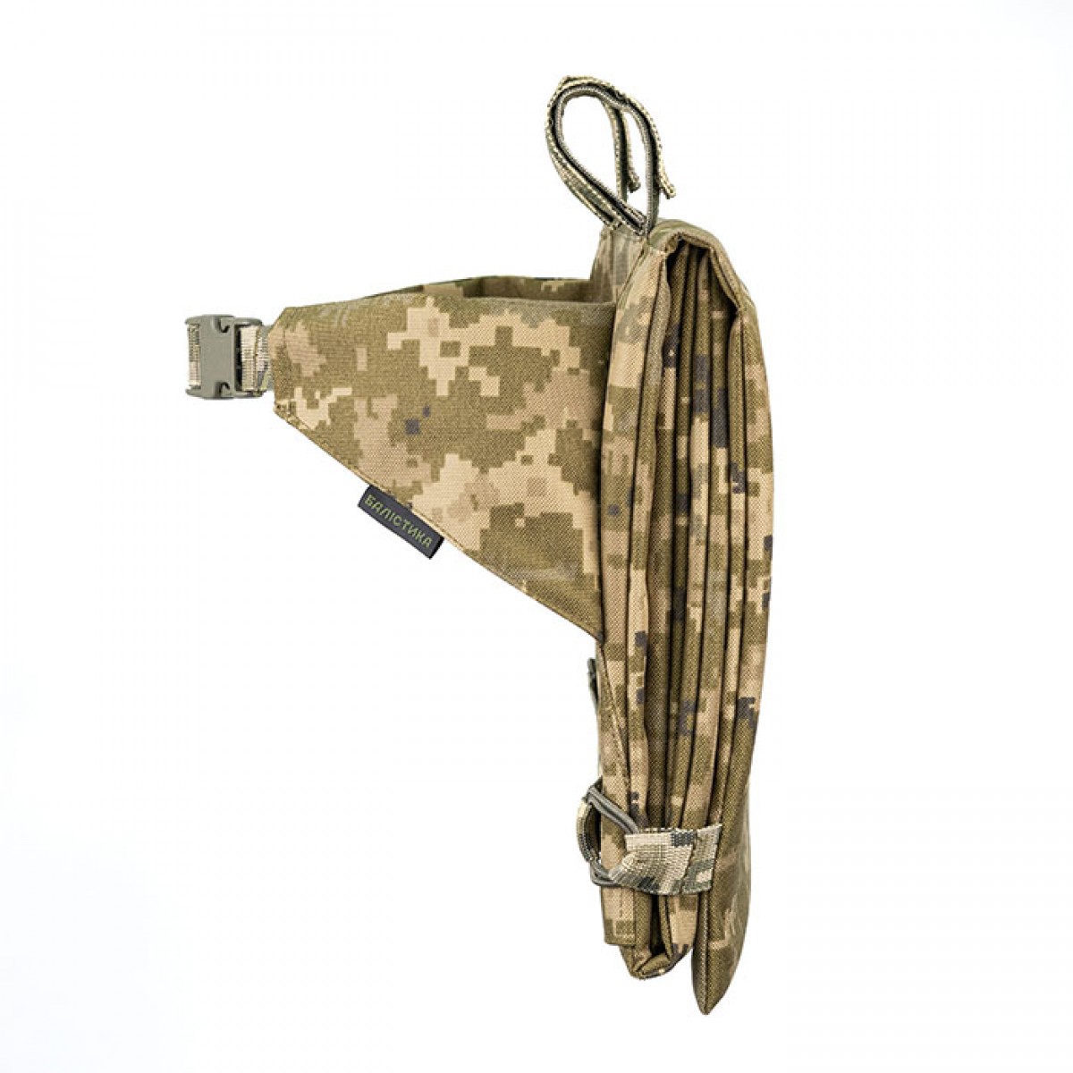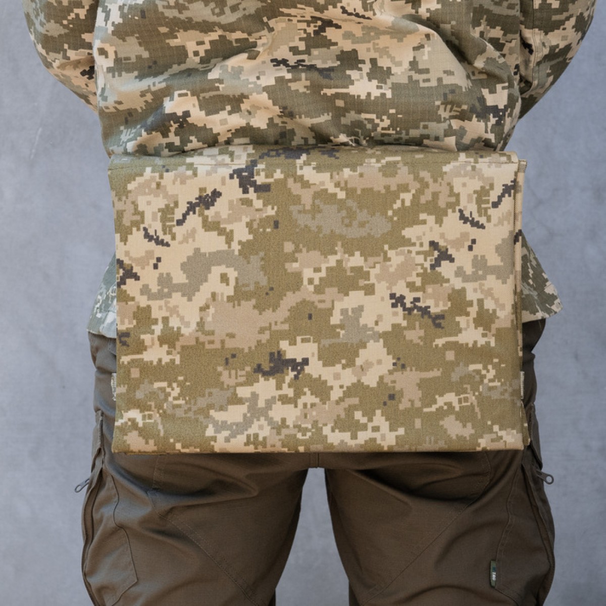 Раскладной коврик от компании «Баллистика» станет полезным дополнением к вашему снаряжению. Он предназначен для сидения на холодных, твердых, грязных поверхностях. Он легкий, простой и надежный. При этом позволяет не только сесть, но и лечь во время работы. Кроме того, в него можно установить нашу баллистическую защиту и в сложенном состоянии он защитит ягодицы и бедра от осколков. Особенности товара Коврик выполнен из качественного износо- и влагостойкого материала. Ткань эффективно противостоит влаге, грязи и механическим повреждениям, что делает ее пригодной для использования и на влажной почве, и на холодном камне или металле. К другим свойствам коврика относятся следующие: Сформирован из четырех отсеков, разделенных швами, благодаря чему его удобно складывать книжечкой. После складывания коврик можно закрепить при помощи перекидной стропы с эластичными шнурками, чтобы он не раскрывался и не болтался. В каждом отделе содержится слой упругой пенки, который добавляет удобства при сидении на твердых поверхностях. Есть возможность использовать бронепакет 35×25,5 см. Для этого в одном из отсеков есть отверстие на липучке, через которое слой пены извлекается и устанавливается бронепакет. Купить мягкую баллистическую противоосколочную защиту можно отдельно, в комплект она не входит. Сложенный коврик не занимает много места и служит отличной сидушкой. В разложенном состоянии достаточно большой, чтобы можно было прилечь, хоть и не в полный рост, и достаточно простой, чтобы быстро его собрать. Можно вешать на пояс с помощью боковых лямок. Они выполнены в виде крылышек и пришиты к коврику под углом. Внутри них расположена эластичная лента, которая снаружи продолжена обычной стропой. Благодаря этому во время сидения, лежания или активности крепление не пережимает кожу и позволяет свободно двигаться. Стропы соединяются фастексом и имеют достаточно запаса для регулировки по длине (91 см). Свободный конец фиксируется резинкой. Также можно пришнуровать на систему MOLLE, например к РПС, или подвесить на обычный ремень. Для этого используются два крепления с петлями на велкро-липучке, которые можно отрегулировать по длине. Благодаря фастексам на них коврик можно быстро отсоединить или присоединить без необходимости возиться со шнуровкой. Технические характеристики Материал: Cordura 1000D. Стропа: полиамид, 2,5 см. Эластичная лента: 2,5 см. Шнурок: шоккорд, 3 мм. Липучка: Velcro. Фурнитура: фастекс (Ammolit Plus). Размеры в сложенном состоянии: 36×26×4,4 см. Размеры в разложенном состоянии: 36×112×1,1 см. Вес (без бронепакета): ~700 г.Основные характеристики Коврик тактический раскладной (ММ-14)