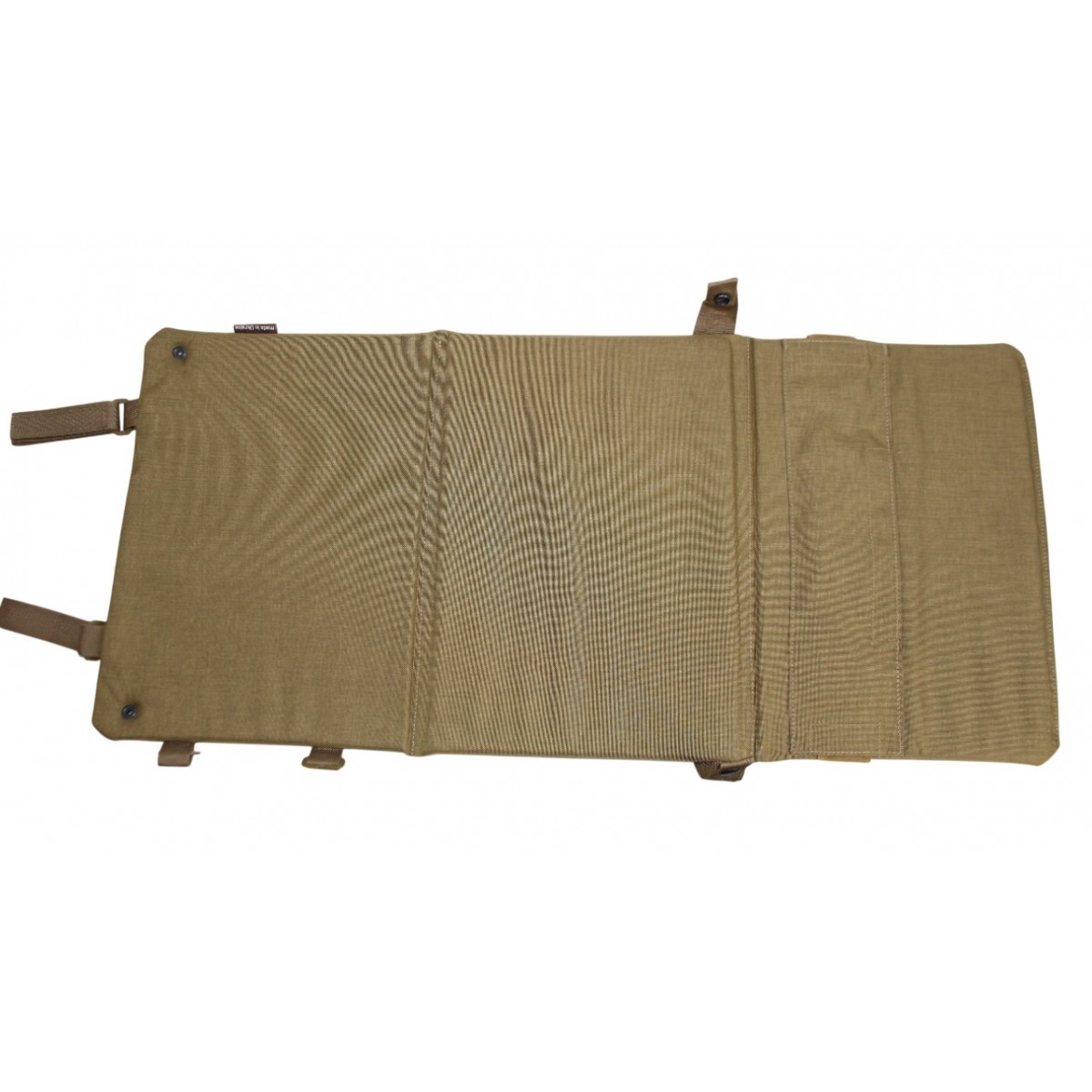 Сидушка состоит из трех частей. Данный каремат можно разлагать и крепить на РПСи, ремни и другие изделия. Для смягчения используется вспененный полиэтилен 10мм. Отшивается из высококачественного материала Cordura 1000D.