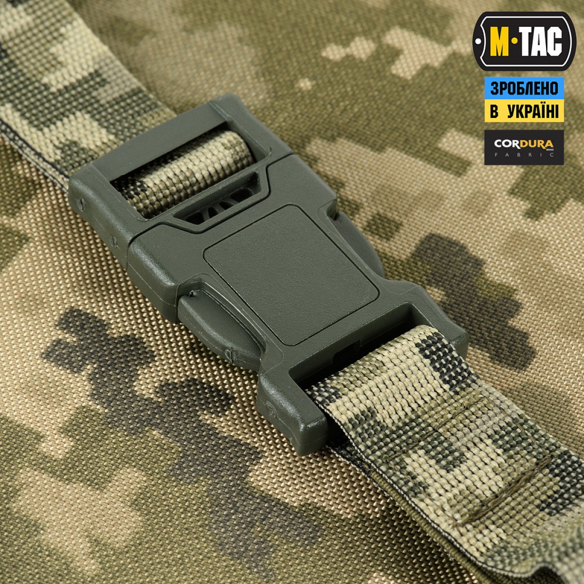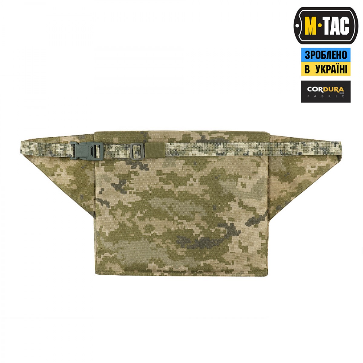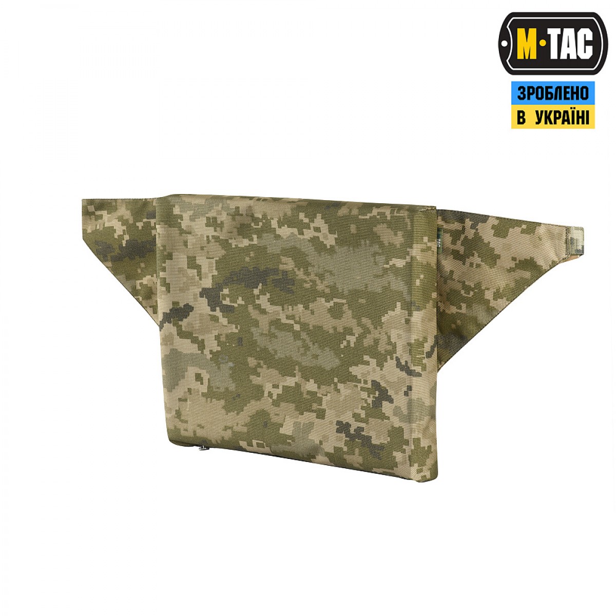 Коврик для сидения от M-Tac крепится на поясе при помощи текстильного ремня с фастексом.