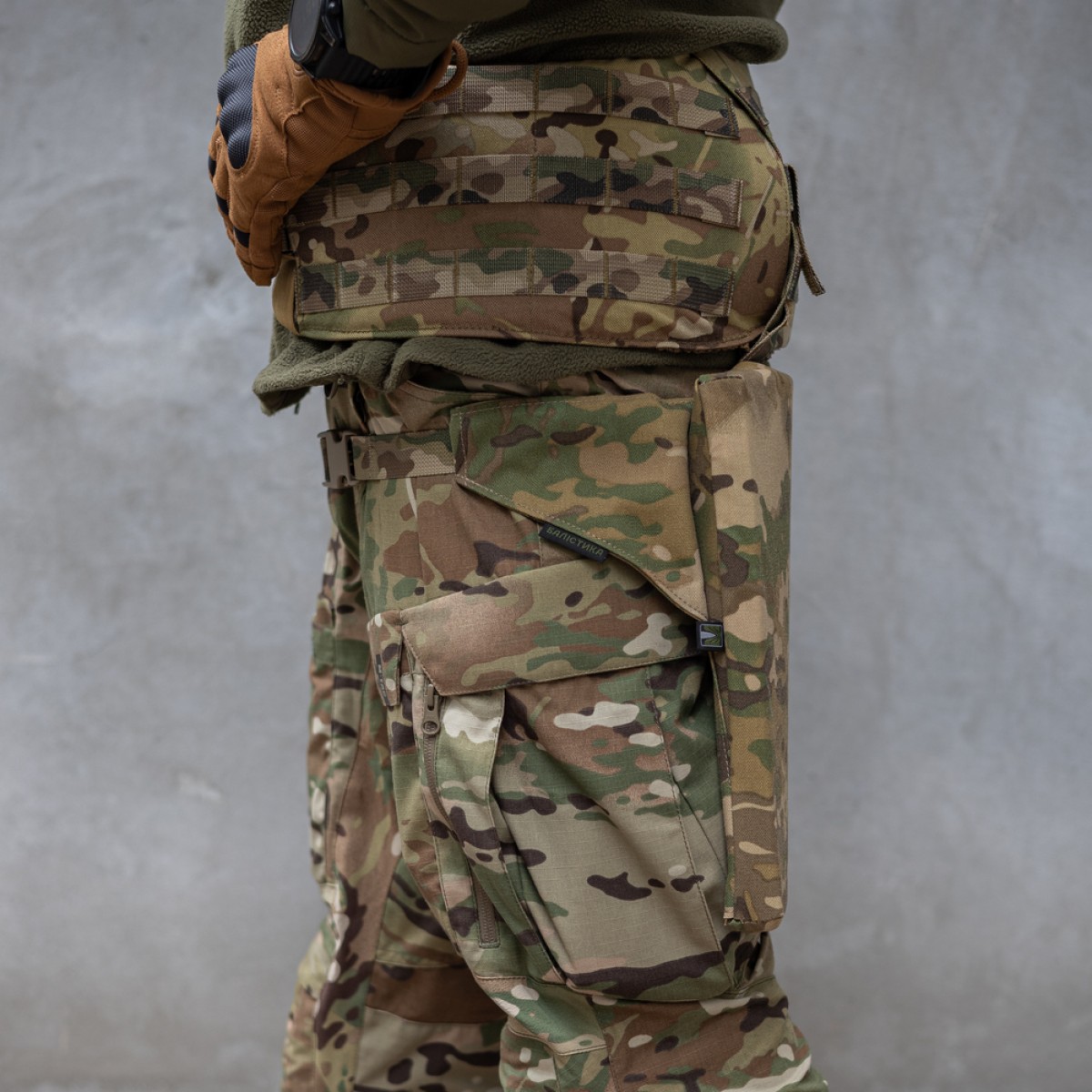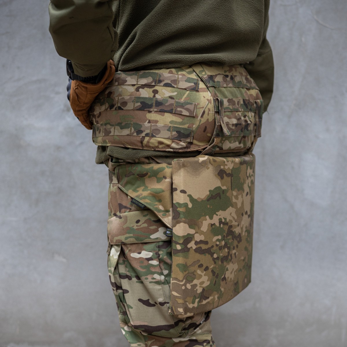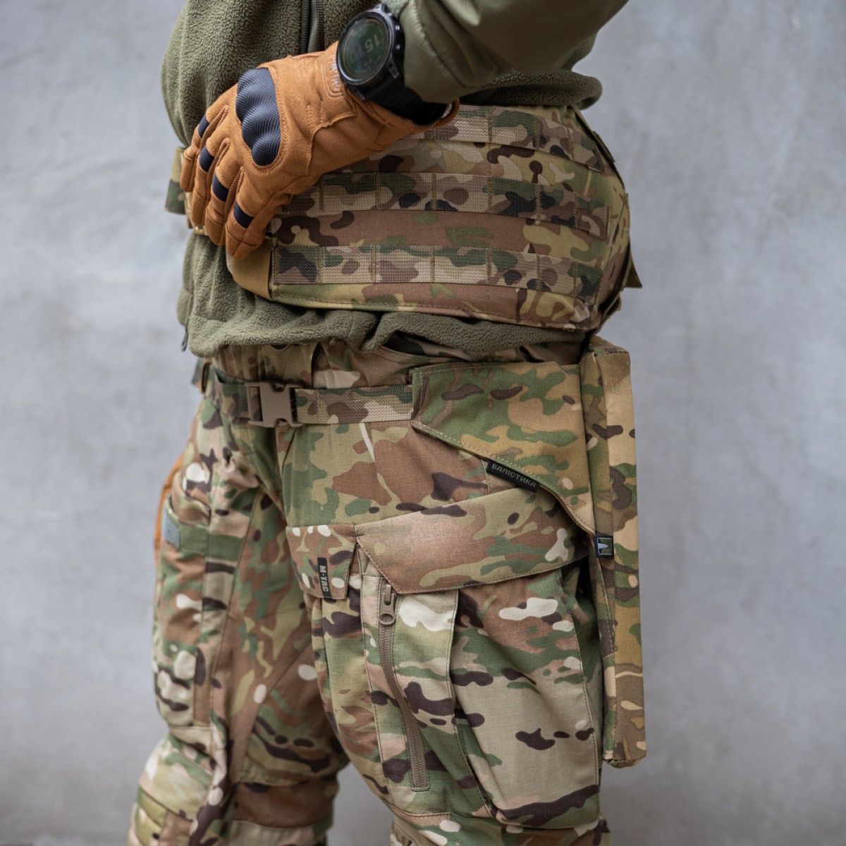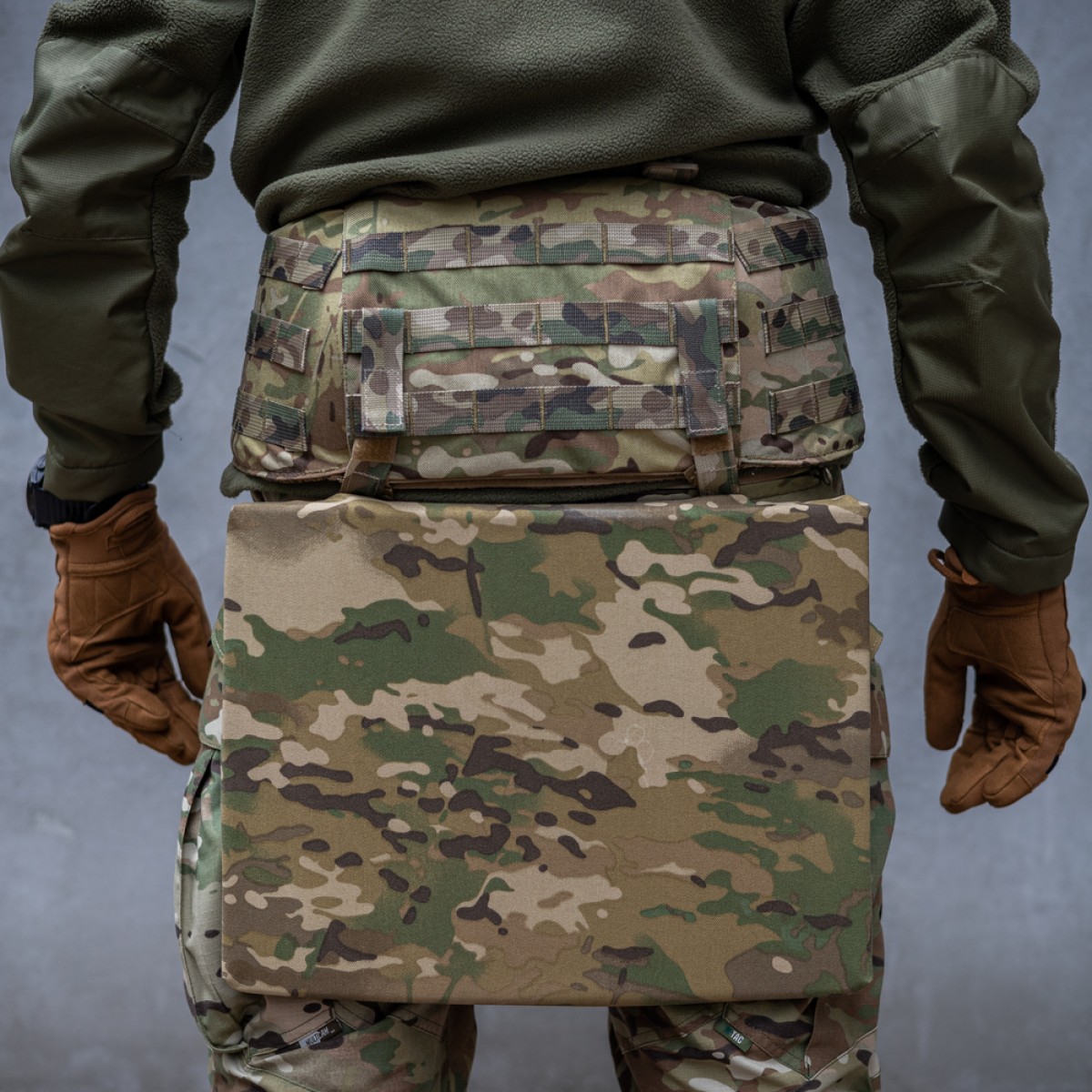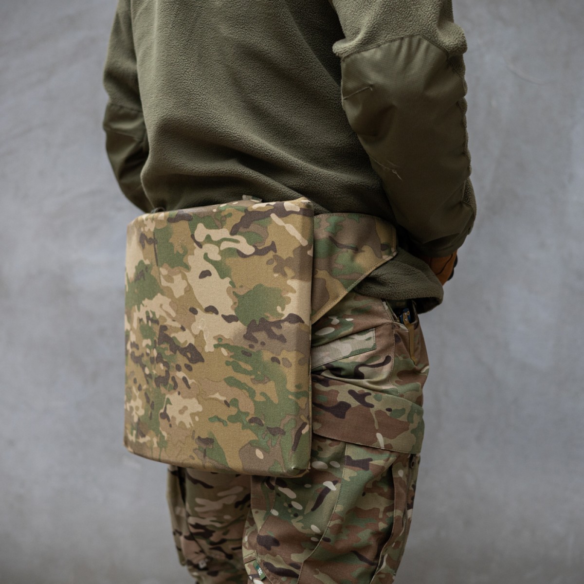Увеличенный тактический коврик от компании «Баллистика» станет полезным дополнением к вашему снаряжению. Он предназначен для сидения на холодных, твердых, грязных поверхностях во время службы. Он легкий, прочный, надежный, не занимает много места. Кроме того, в него можно установить баллистический пакет и он защитит ягодицы и бедра от осколков. Особенности товара Коврик выполнен из качественной влаго- и износостойкой ткани, которая делает его пригодным для использования и на сыром грунте, и на холодном камне или металле. К другим свойствам изделия относятся следующие: Внутри содержатся два слоя упругой пенки, которые добавляют удобства при сидении на твердых поверхностях. Пластиковый лист, также вставленный внутрь, служит дополнительной защитой содержимого от механических повреждений. Есть возможность использовать бронепакет 39,5×29,5 см. Через отверстие на липучке один слой пены можно извлечь и вместо него установить бронеэлемент. Купить мягкую баллистическую противоосколочную защиту можно отдельно, в комплект она не входит. Можно надеть на пояс с помощью боковых лямок. Они выполнены в виде крылышек и пришиты к коврику под углом. Внутри них закреплена эластичная лента, которая снаружи продолжается обычной стропой. Благодаря этому во время сидения или активности крепления не пережимает кожу и позволяет свободно двигаться. Лямки застегиваются фастексом, и одна из них имеет значительный запас для регулировки по длине (93 см). Свободный конец фиксируется резинкой. Также можно пришнуровать на систему MOLLE, например к РПС, или подвесить на обычный ремень. Для этого используются два вертикальных крепления с петлями на велкро-липучке, которые к тому же можно отрегулировать по длине. А благодаря фастексам на них коврик можно быстро отсоединить или присоединить без необходимости возиться со шнуровкой. Технические характеристики Материал: Cordura 1000D. Стропа: полиамид, 2,5 см. Эластичная лента: 2,5 см. Липучка: Velcro. Фурнитура: фастексы, двухщелевые рамки (АММ). Размер: 40×30×2 см. Вес (без бронепакета): 540 г.Основные характеристики Коврик для сидения (Мультикам неоригинальный) XL