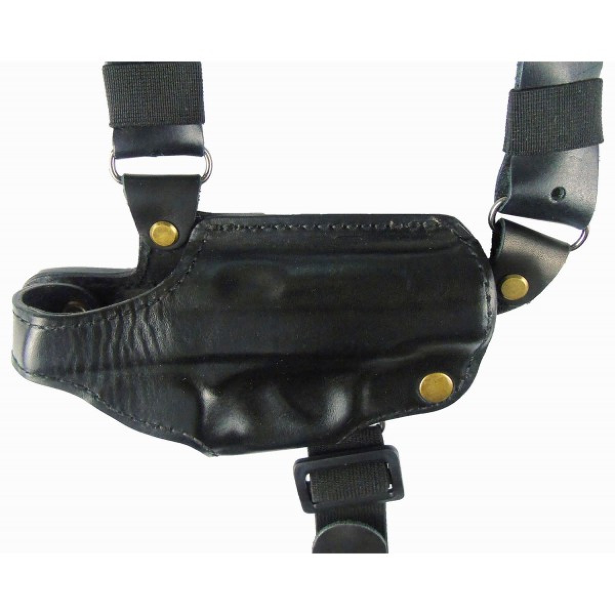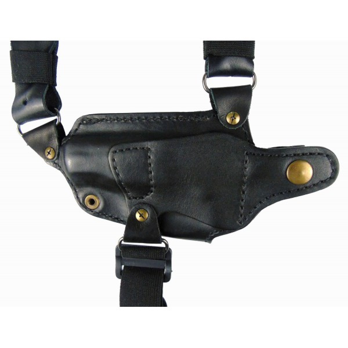Кобура для ПМ. По сути дела является кобурой-футляром, так как между двумя слоями кожи в изделии находится термопласт. Такая конструкция обеспечивает надежную фиксацию оружия даже в расстегнутой кобуре. Конструкция кобуры позволяет быстро извлечь из нее оружие. Крепление кобуры выполнено полностью из кожи. Резиновая лента используется только для крепления кобуры и подсумка к поясу. Это обеспечивает полную свободу наклонов туловища. Конструкция крепления обеспечивает максимальную плотность прилегания оружия к корпусу и несложную подгонку под индивидуальные размеры человека. Предусмотрена возможность снятия крепления. При этом кобура может носиться на поясе.