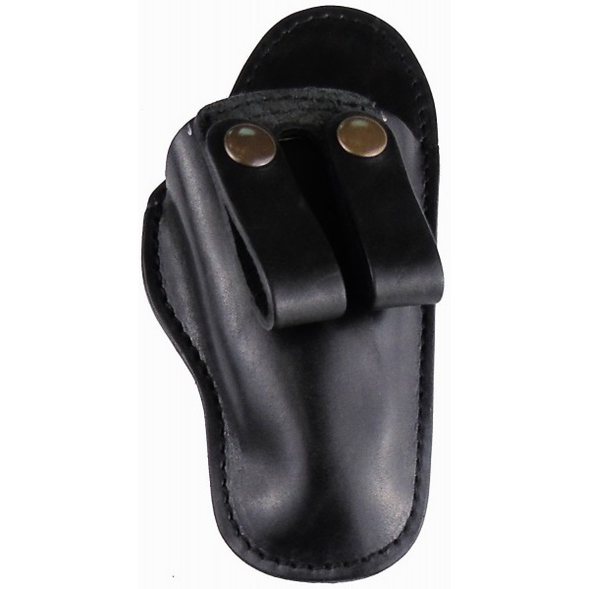 Может использоваться для моделей ПМ, Форт 12. Модель снабжена дополнительной съемной накладкой, которая фиксируется на кобуре с помощью ременных винтов. При этом скоба может быть перенесена с кобуры на накладку. Это обеспечивает возможность скрытого ношения кобуры. Скоба одевается на брюки под ремень, а рубашка заправляется между кобурой и накладкой и полностью маскирует кобуру. Безусловно, это влияет на скорость извлечения пистолета из кобуры, однако обеспечивает максимальную скрытность ношения. Для извлечения оружия необходимо расстегнуть пуговицу на рубашке. Без накладки кобура может носиться на поясе: на правом боку, на левом боку под ремнем, внутри брюк, сзади.