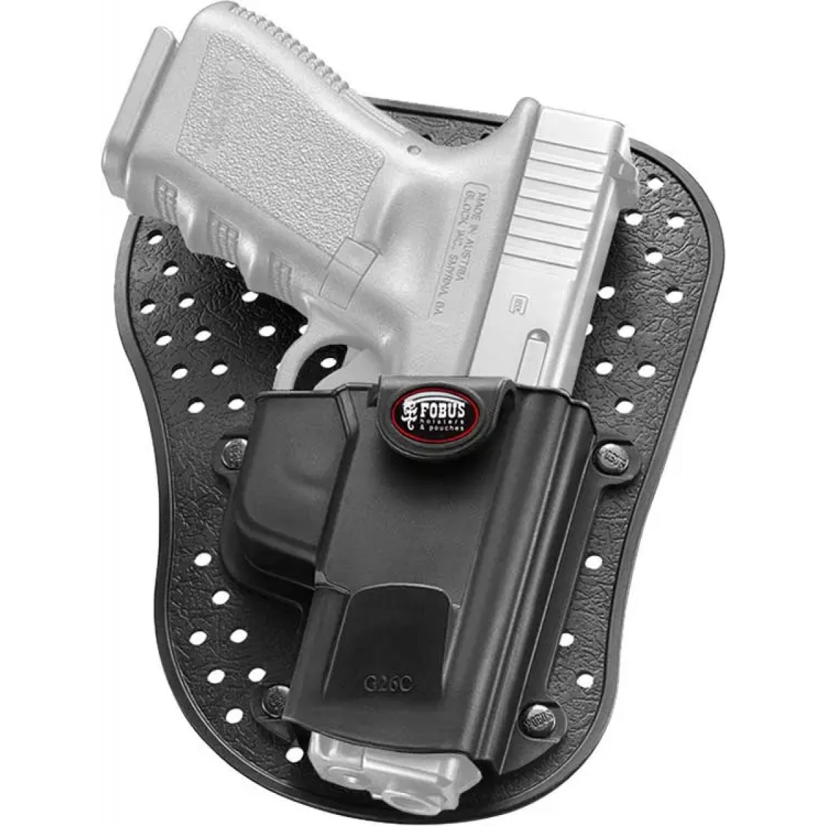 Внутрибрючная кобура Fobus G26C предназначена для скрытого ношения пистолетов Glock-19/26. Модель G26C, конструкция которой позволяет быстро и легко извлекать из нее оружие, изготовлена методом литья из высокопрочного полимера. Низкопрофильный дизайн способствует более скрытому ношению кобуры. Пистолет фиксируется в кобуре при помощи технологии пассивного удержания, которая гарантирует защиту от несанкционированного извлечения оружия третьими лицами. Вентиляционные отверстия обеспечивают более комфортное ношение.