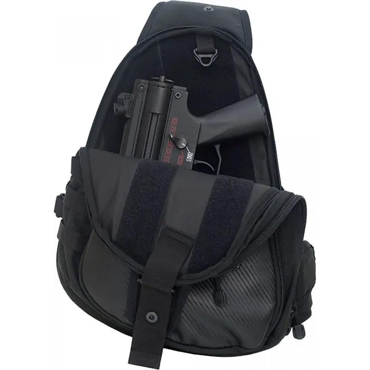 Рюкзак слингер DANAPER Stealth Urban предназначен для скрытого переноса и хранения малогабаритных образцов оружия (HK MP-5K, Cz Scorpion и др). Разработан для спец.подразделений полиции и военных. Конструкция рюкзака способствует быстрому извлечению оружия при расположении слингера как на груди, так и за спиной. Кроме отделения для оружия имеется два больших утилитарных отделения с множеством карманов. Рюкзак производится в вариантах, как для правши, так и для левши.