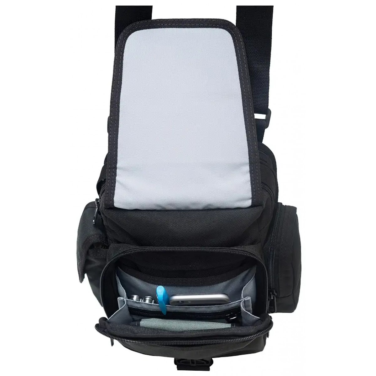 Центральное отделение имеет внутри карман позволяющий носить планшет или гаджет с диагональю до 7 дюймов. Также по бокам сумки размещено еще 2 кармана под телефон, фонарик или прочие небольшие аксессуары. Сумку можно носить как на плече на шлейке, так и за ручку.