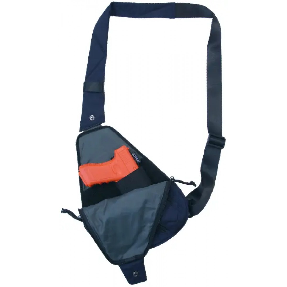 Габариты сумки позволяют разместить практически любой тип пистолета. Модель имеет основной большой отдел, в который можно вместить все необходимые пользователю вещи и аксессуары. Специальное крепление надежно зафиксирует пистолет внутри сумки. С внешней стороны имеется 2 кармана на молнии для небольших аксессуаров.