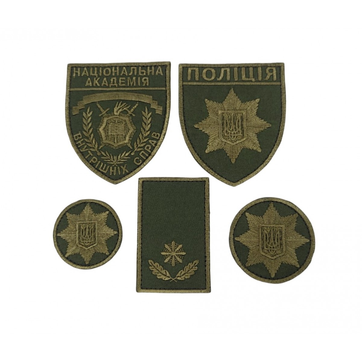 Комплект нашивок Полиция Олива (8 шевронов+2 погона)