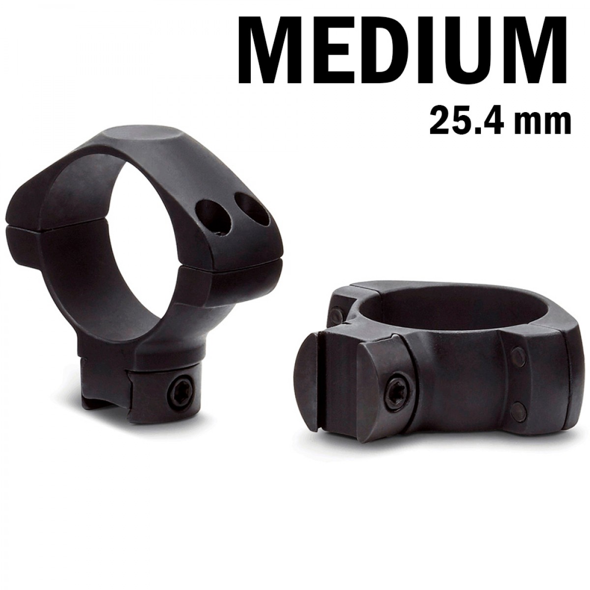 Крепление со средним посадочным профилем для прицелов диаметром трубы 25.4 мм (1 дюйм). Устанавливается на планку "Ласточкин хвост" 11 мм, состоит из отдельных монтажных колец, изготовленных из стали. Рекомендуются для прицелов диаметром объектива до 40 мм.