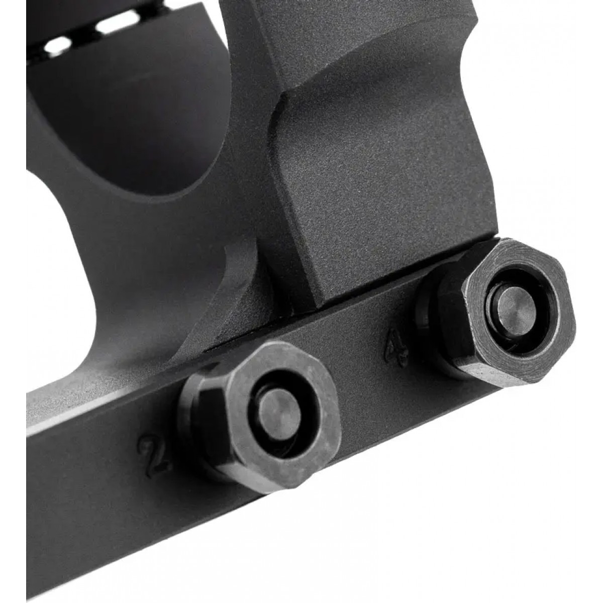 Профиль увеличенной ширины и длины обеспечивает чрезвычайно стабильное крепление. Для надежного удержания тяжелых прицелов на карабинах с сильной отдачей каждое полукольцо крепится к кронштейну шестью винтами. Четыре поперечных винта, которые используются для крепления моноблока к планке Picatinny, имеют специальный пронумерованный порядок затяжки. Рекомендуется затягивать поперечные винты с усилием 60-65 in-lbs.