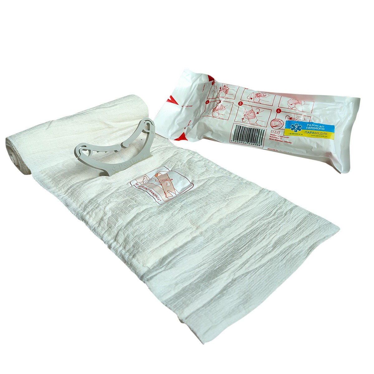Конструкция израильского бандажа позволяет накладывать повязку одной рукой, без необходимости использования дополнительных компрессионных элементов, эластичных бинтов, фиксирующих зажимов или шпилек. Компактный, лёгкий, стерильный.