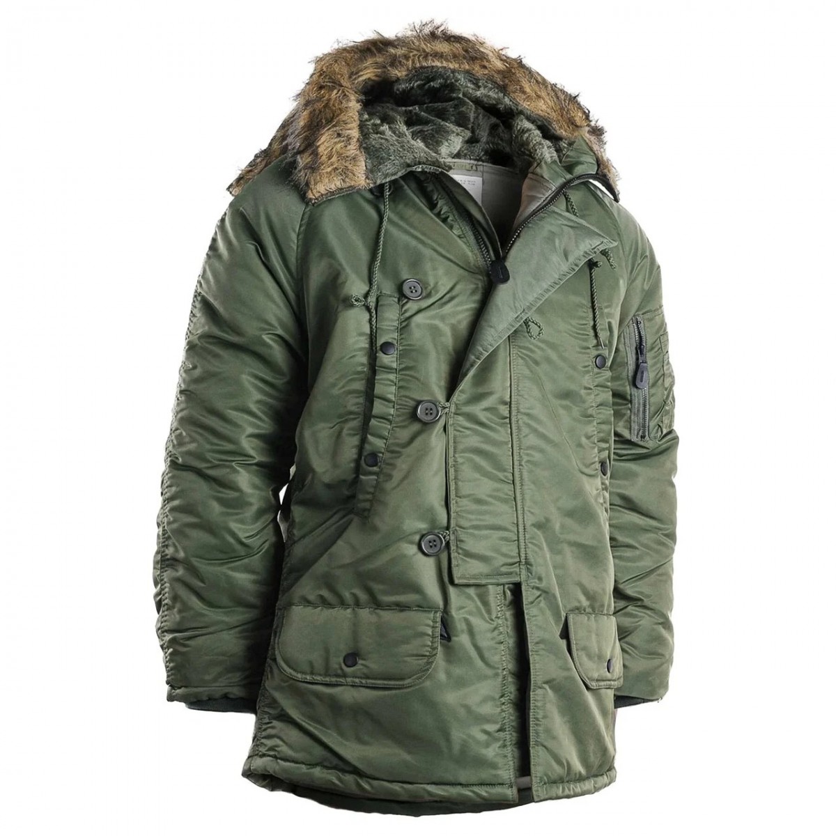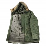 Куртка "Аляска" незаменима зимой. Длина парки позволяет защитить от холода практически все тело. Капюшон из искусственного меха эффективно защищает шею и голову от холода и ветра. Благодаря полиуретановому покрытию, куртка водонепроницаема и грязеустойчива. Имеется утяжка на талии. Куртка-парка "Аляска" на холодную зимнюю погоду от немецкой компании. Модель выполнена по образу и подобию куртки разработанной для военных частей палубной авиации ВВС США дислоцирующихся на территориях с суровыми погодными условиями. Основная ткань парки N3B обладает водоотталкивающими свойствами, что позволяет не боятся брызг или легкого дождя. В куртке предусмотрены трикотажные манжеты с эластаном. Глубокий и теплый капюшон.