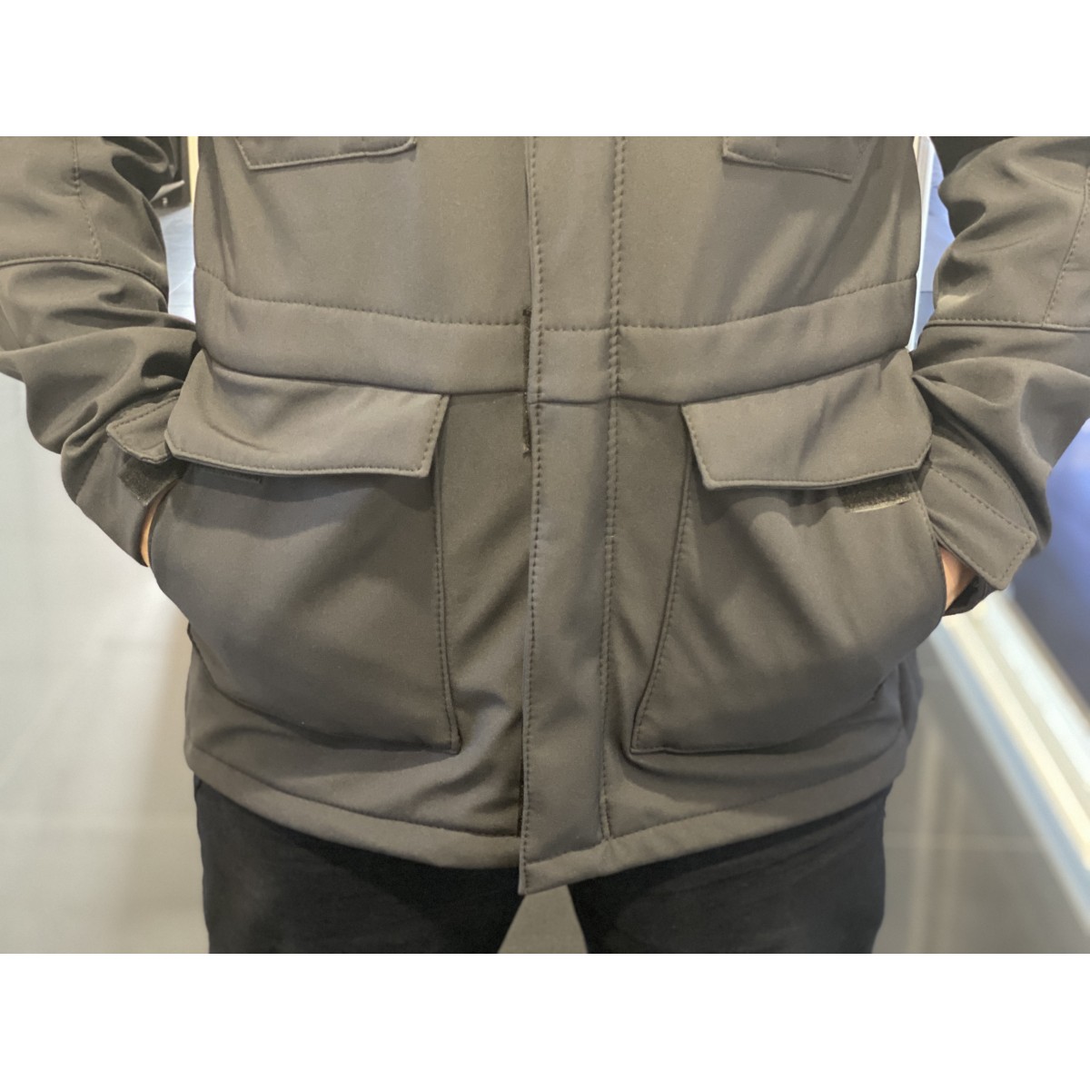 Модель разработана специально для служащих, поэтому имеет два боковых разреза на молнии для легкого доступа к кобуре. Предусмотрено несколько внешних и внутренних карманов, в том числе два на рукавах. В нагрудном кармане скрытая стропа для крепления жетона. Капюшон имеет высокое основание для защиты шеи и веревочку для стягивания периметра.