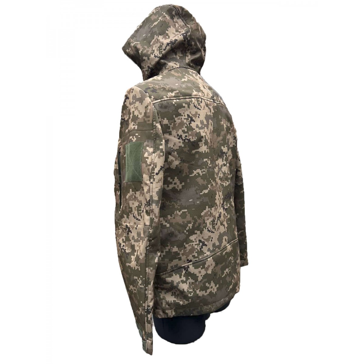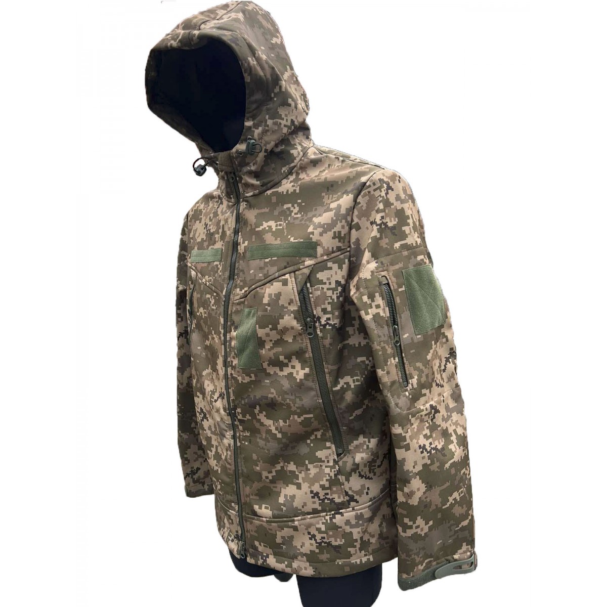 Тактическая куртка softshell Pancer пиксельной расцветки сшита с учетом требований к униформе курсантов военных училищ. Эргономичный крой способствует комфортной носке, а технологичный материал softshell – эффективному сохранению тепла, даже после многих часов, проведенных на улице. Ткань представляет собой трехслойный материал, выполняющий роль верха подкладки изделия. Такой подход позволил добиться небольшого веса и объема готовой куртки, без потери теплоизоляционных свойств. Внутренний слой из флиса, он мягкий, хорошо сохраняет тепло, но при этом не впитывает влагу, а выводит ее для испарения, оставаясь сухим, даже когда человек долгое время активно двигается. Внешний слой не пропускает воду и ветер, быстро испаряет влагу. Между двумя тканями находится мембрана, она обеспечивает отвод влаги от подкладки на внешний слой для испарения, и поступление воздуха для оптимальной терморегуляции.