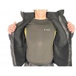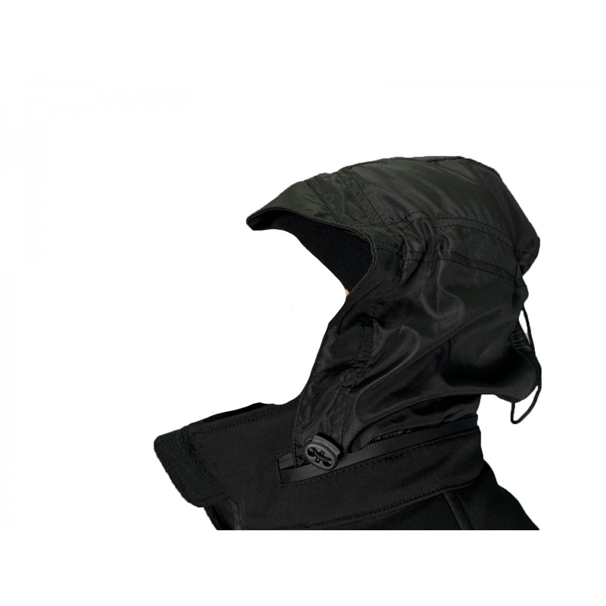 Внешняя куртка выполнена из плотного Soft Shell-материала, защищающего от порывов ветра и лёгкой влаги. Она оснащена регулируемым складным капюшоном, который убирается в воротник, вентиляционными молниями под мышками и манжетами на липучках. На куртке расположены два боковых кармана, три кармана на рукавах (один справа и два слева), а также два внутренних кармана.