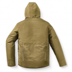 Верх выполнен из ветро- и влагозащитной мембранной ткани цвета койот, которая устойчиво переносит контакт с снегом и осадками. Внутри использован утеплитель силикон плотностью 200, создающий запас тепла без излишнего объёма. Термоподкладка Omni Heat распределяет и отражает собственное тепло тела, поэтому куртка подходит для длительной стоячей работы и перемещений в мороз.
