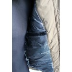 Несъёмный регулируемый капюшон затягивается шнуром и плотно закрывает голову и шею. Центральная молния дополнена ветрозащитным клапаном на липучке, который перекрывает проникновение ветра. В области манжет предусмотрены внутренние трикотажные вставки, плотно облегающие запястье и не дающие холодному воздуху заходить под рукав. Низ куртки стягивается утяжками для дополнительной защиты от продувания.